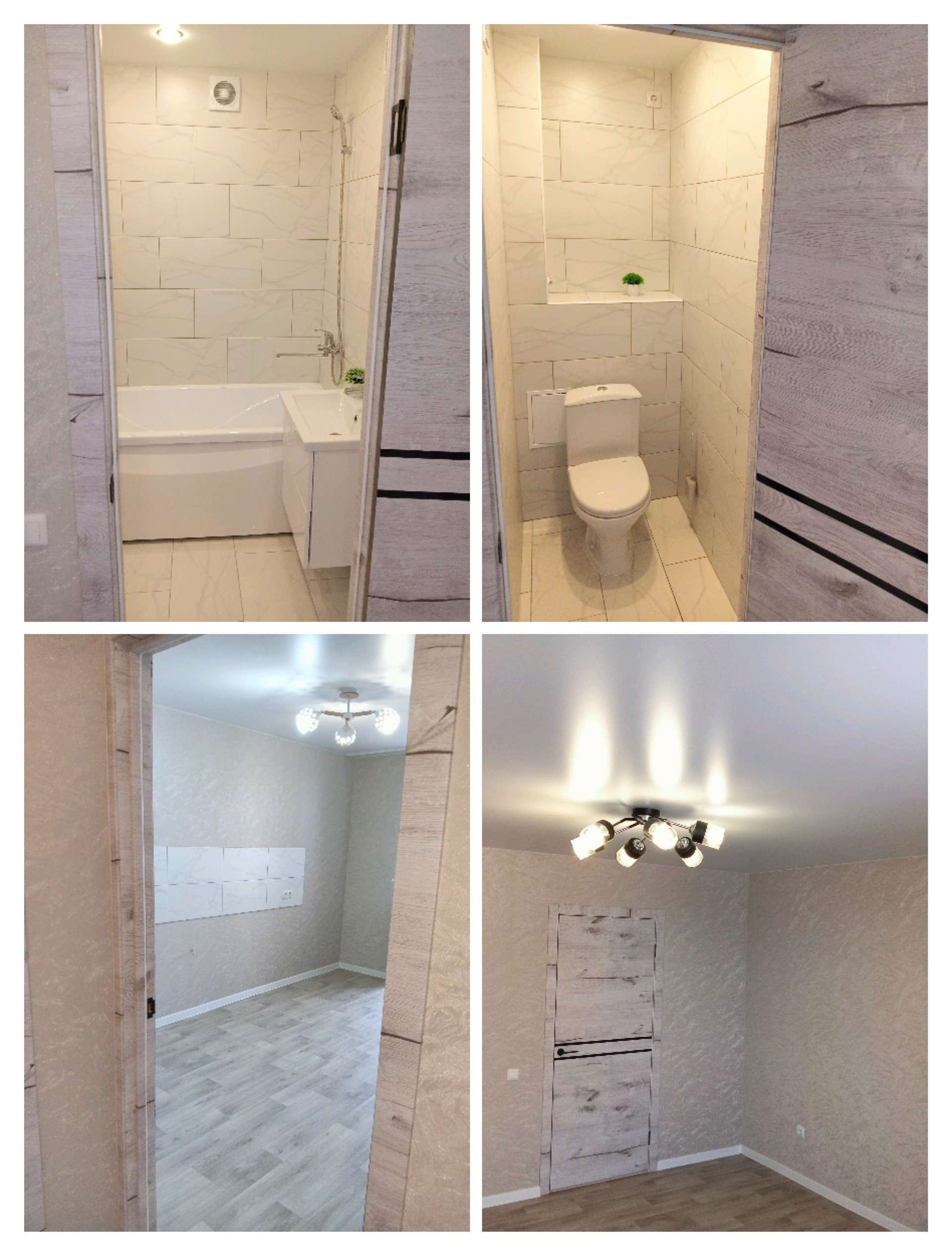 В квартире сделан качественный ремонт: натяжные потолки, хорошее освещение, дорогие межкомнатные двери. В комнате, в зале и на кухне на полах постелен комерческий линолиум, в коридоре, ванной и туалете керамогранит, за батареями стены выложены плиткой, балкон сделан полностью, есть вывод под водонагреватель.