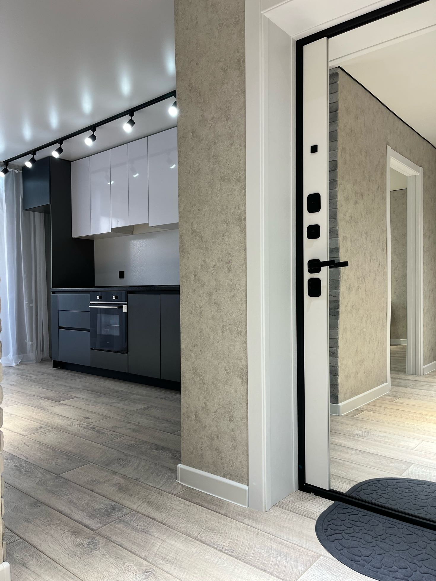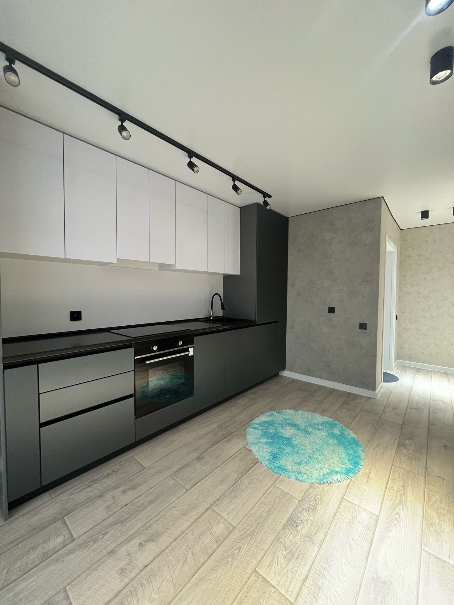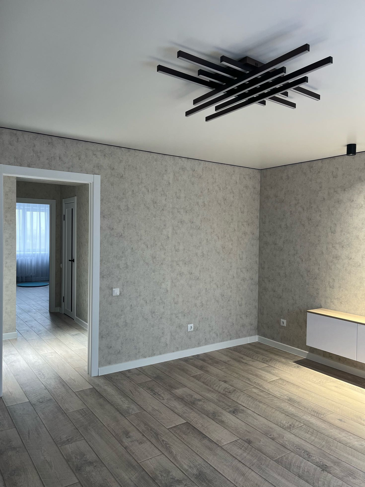 В квартире сделан дорогой качественный ремонт: натяжные потолки, треки,стильные люстры , потолочные ниши, парящая стена, точечные светильники. На полах постелен брендовый ламинат,категории люкс!!!