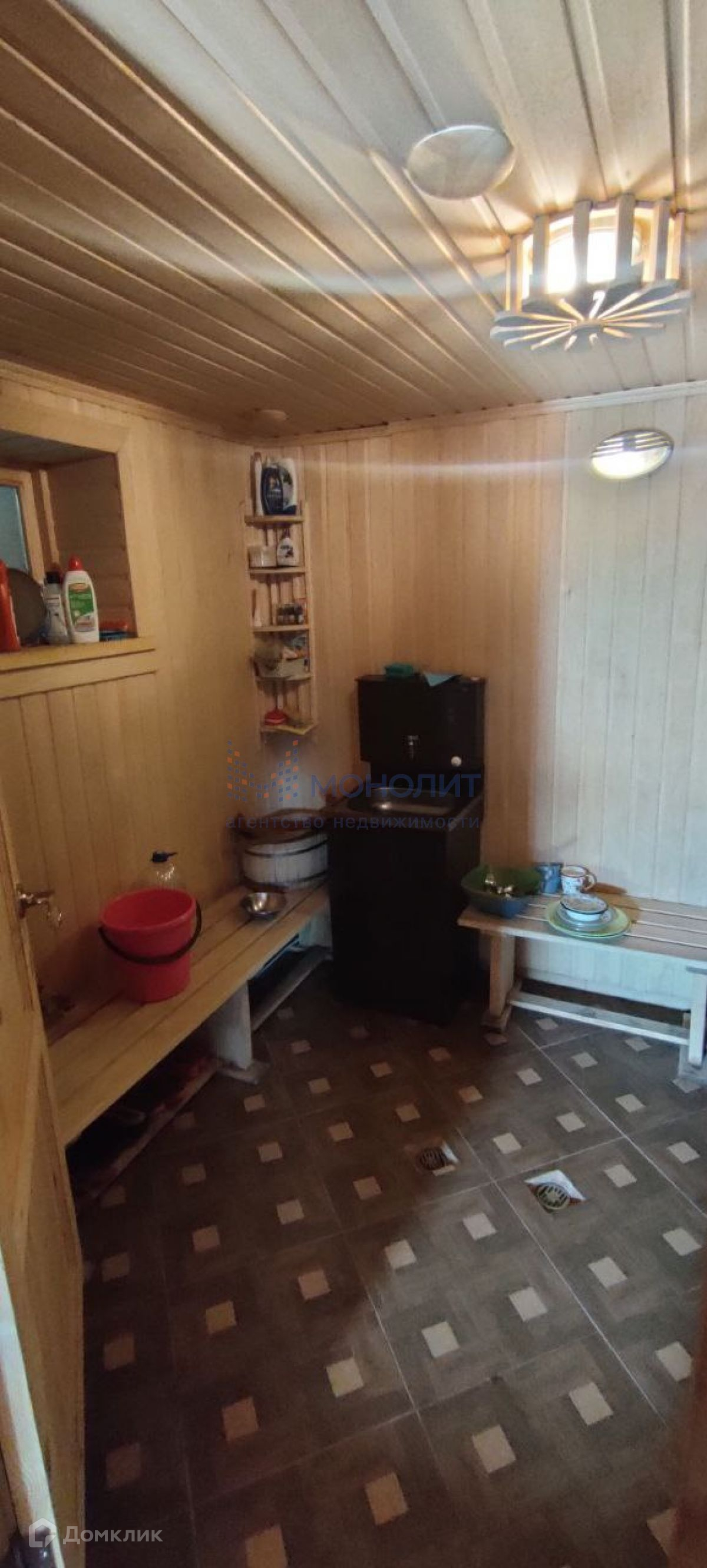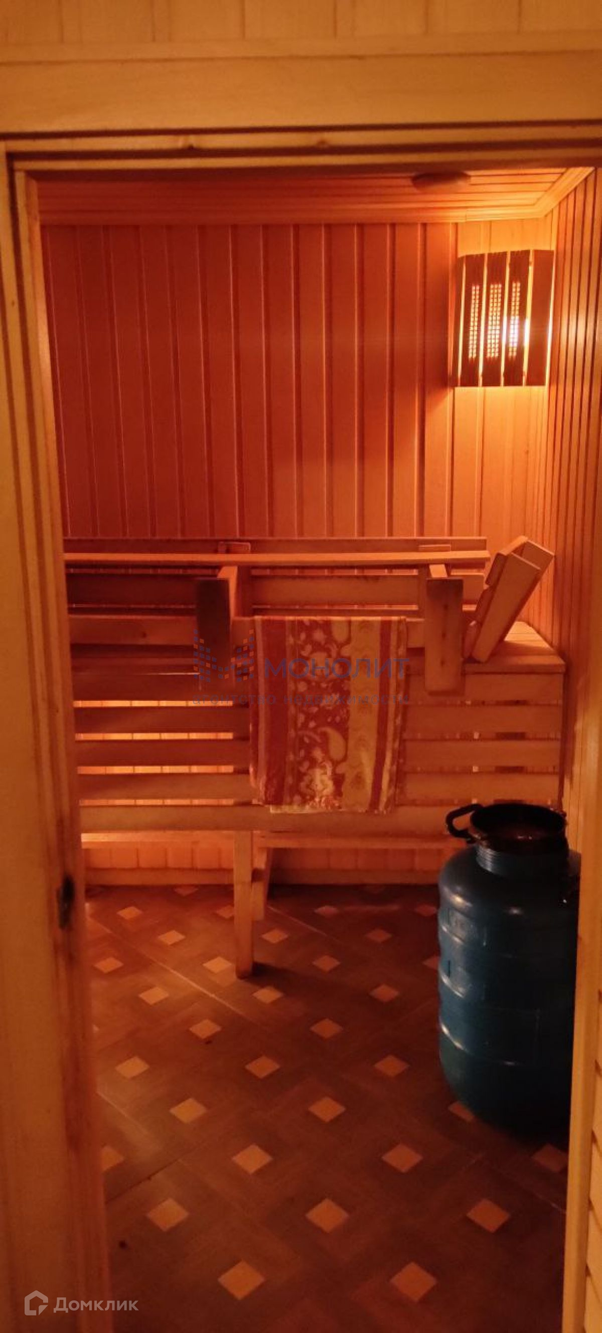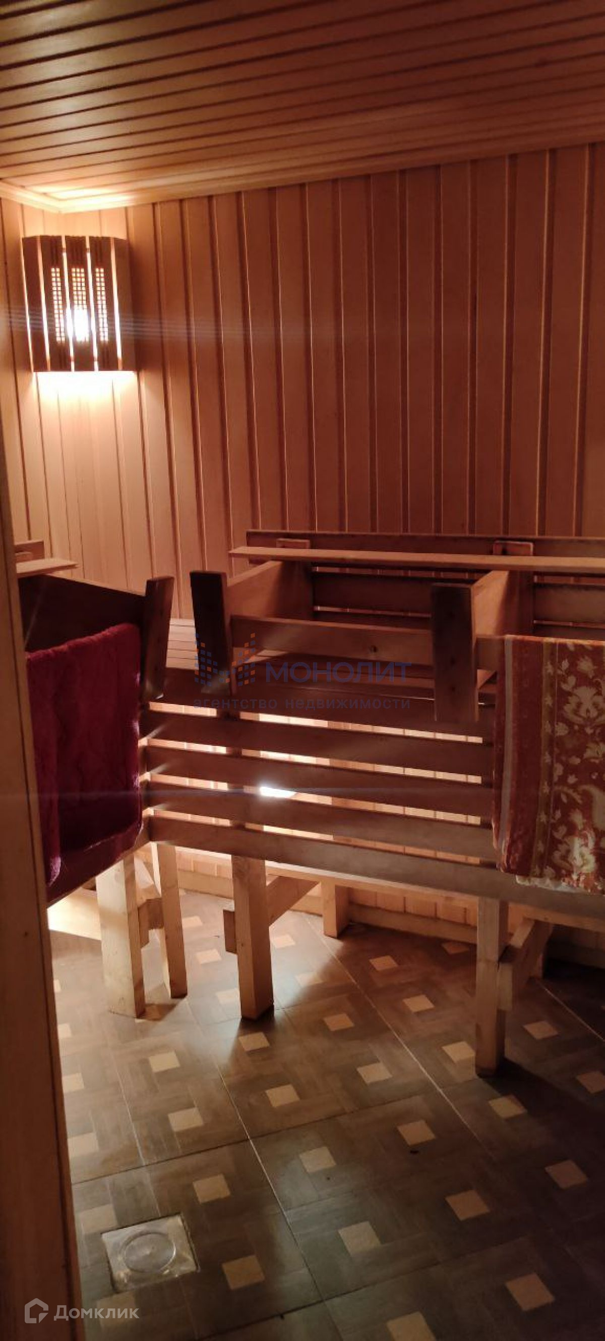 На территории участка расположена двухэтажная баня. Первый этаж включает в себя моечную, парную, кладовую и уютную гостиную с камином - идеальное место для отдыха после тяжелого дня. Второй этаж предлагает три просторные спальни и балкон, с которого открывается великолепный вид на окрестности.