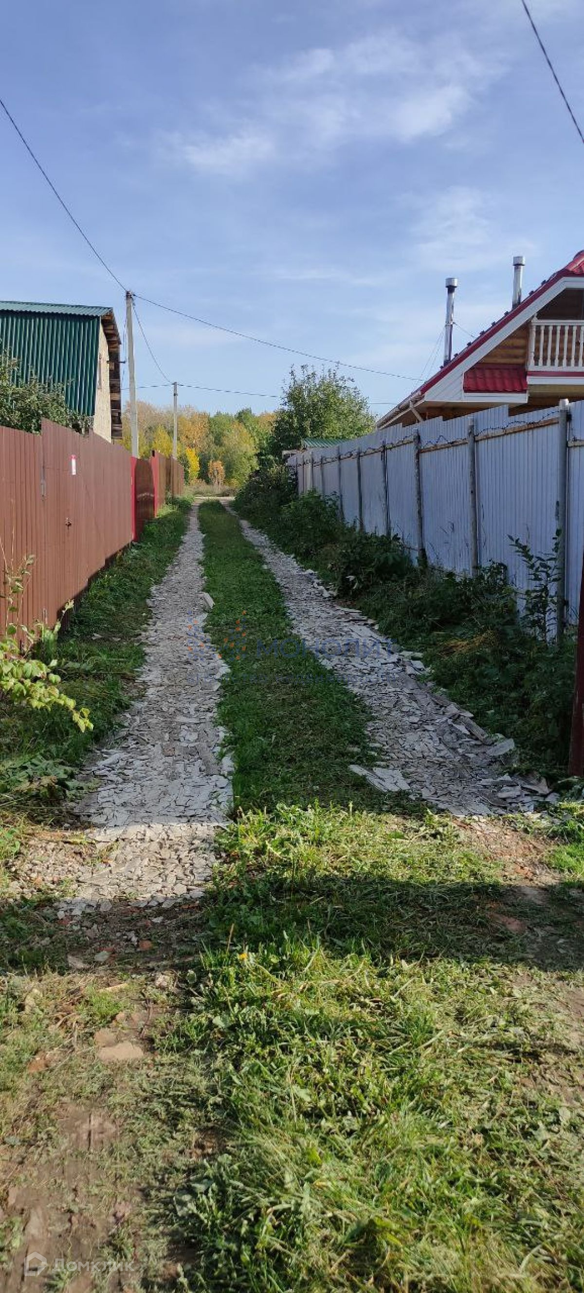 Участок ровный, ухоженный, на нем растут плодоносящие деревья. За участком начинается лес, что создает дополнительную приватность и возможность наслаждаться природой.