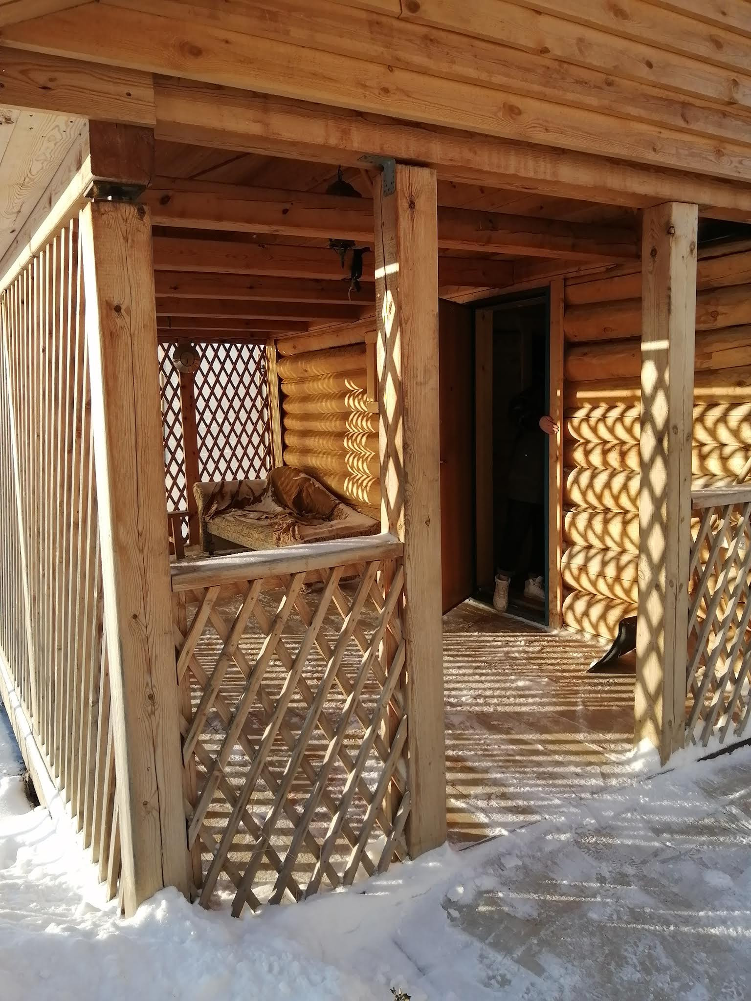Во дворе расположена баня из сруба с красивой беседкой и зоной барбекю.