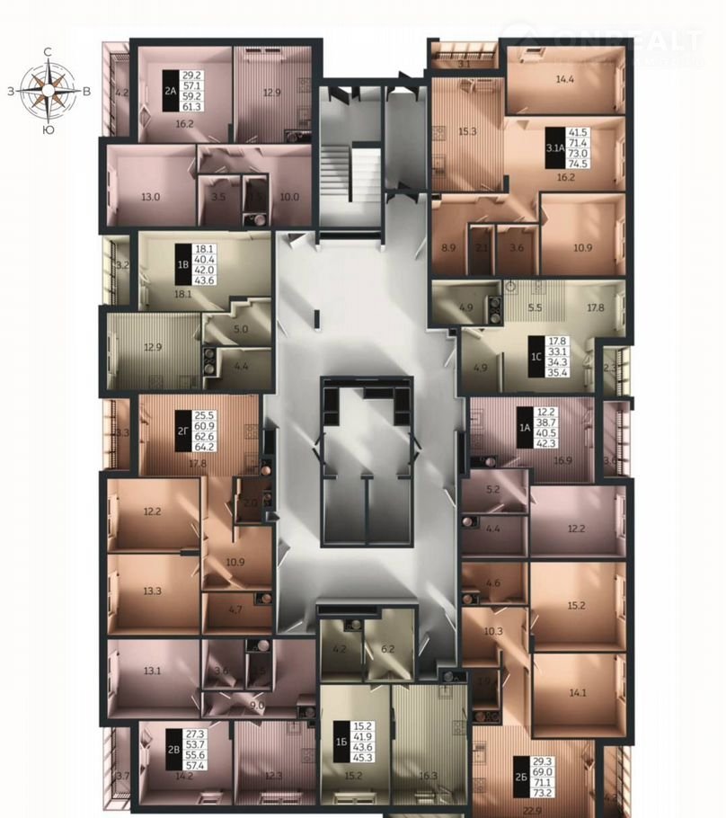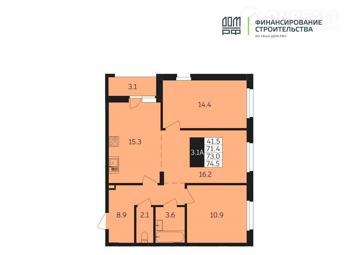 Общая площадь 73.3 м2
