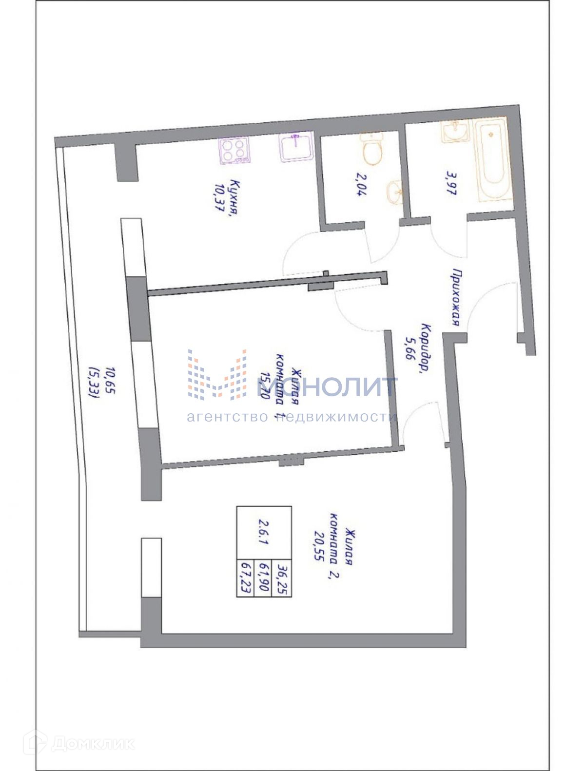 -Квартира просторная, с общей площадью 67,23 м²;
