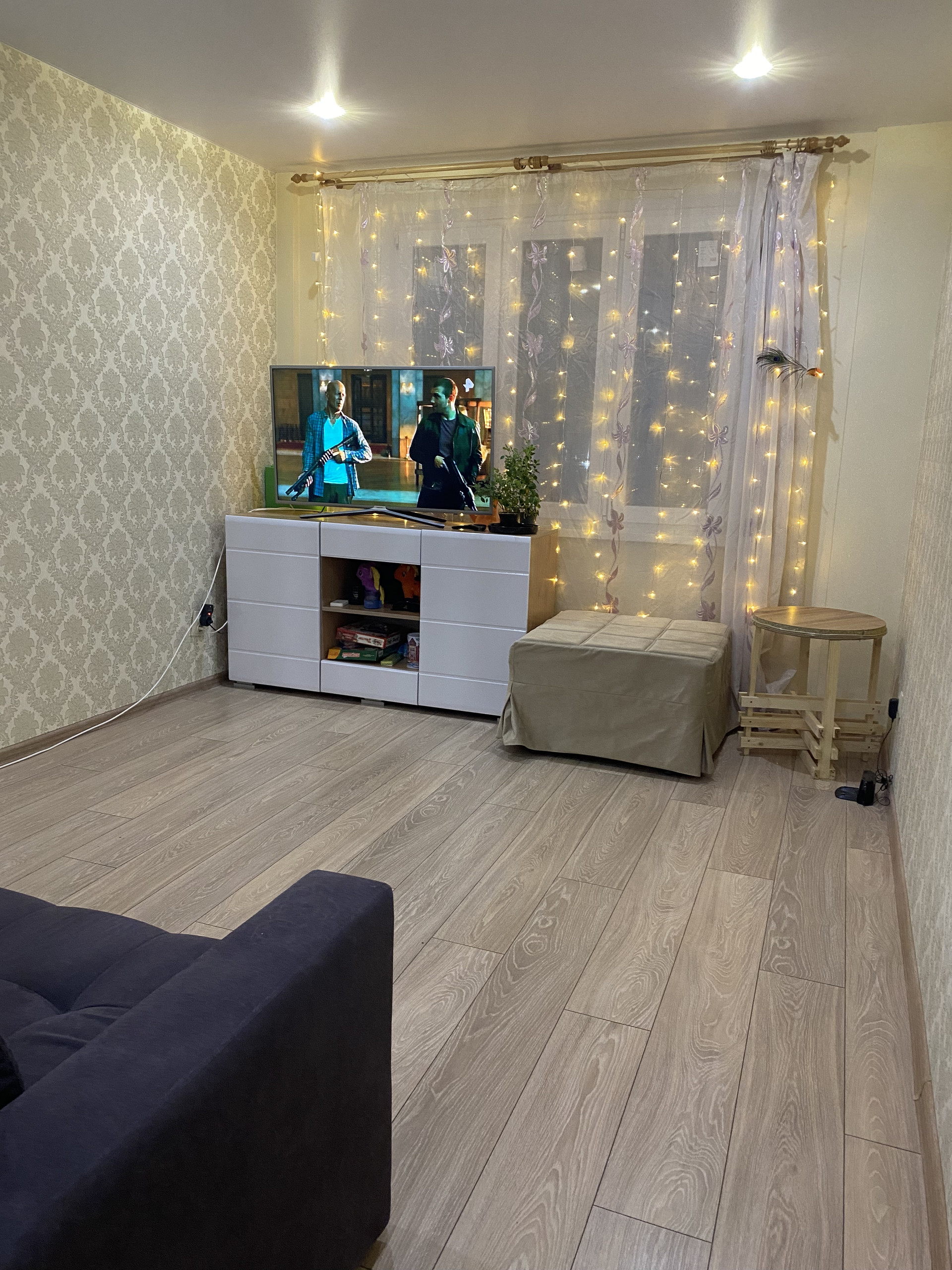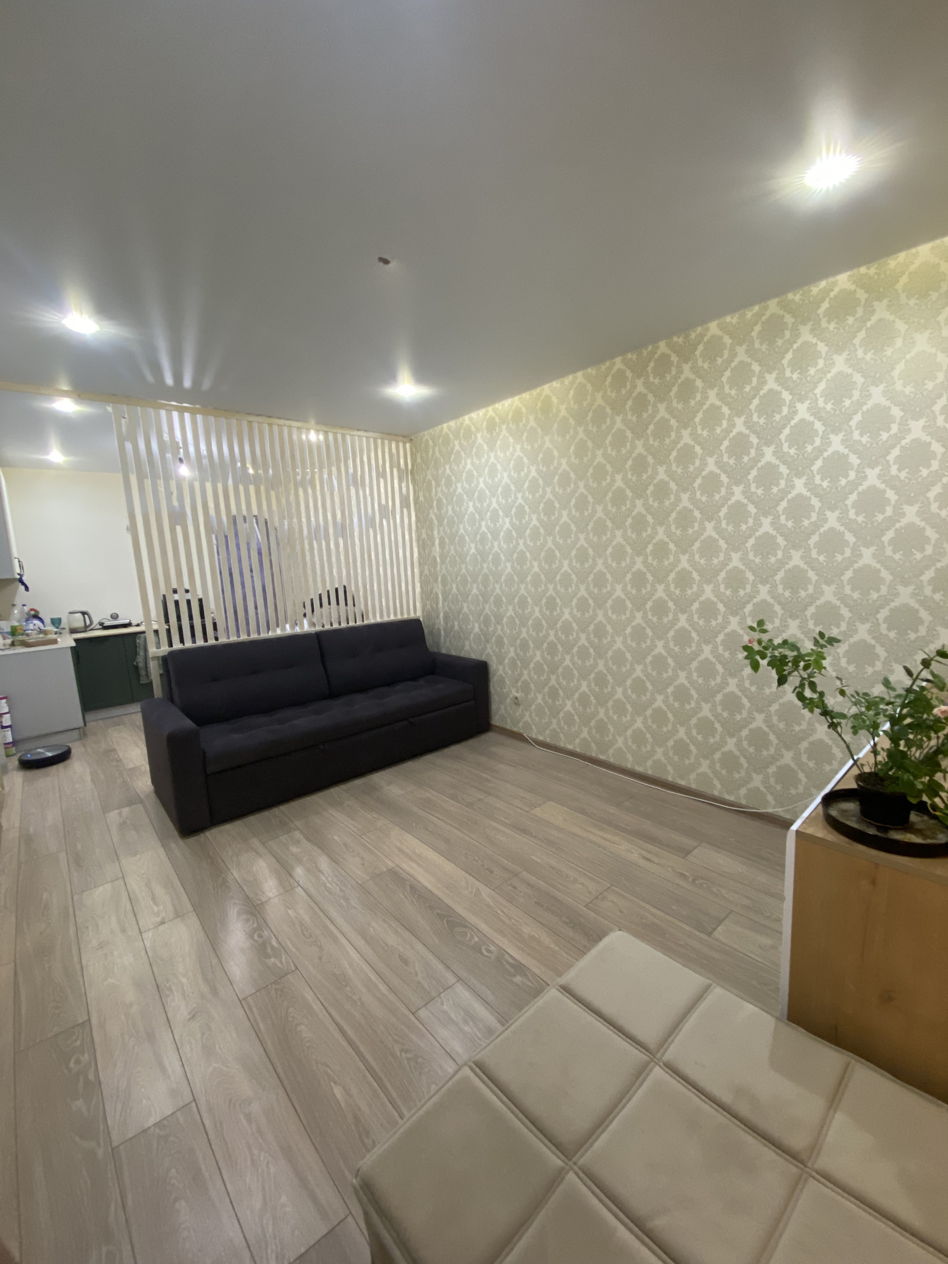 Квартира очень тёплая, светлая, ремонт выполнен в светлых тонах с использованием современных качественных материалов. Санузел совмещенный и просторный. В прихожей уложен тёплый пол под плиткой . Комната зонирована. Мебель остаётся.