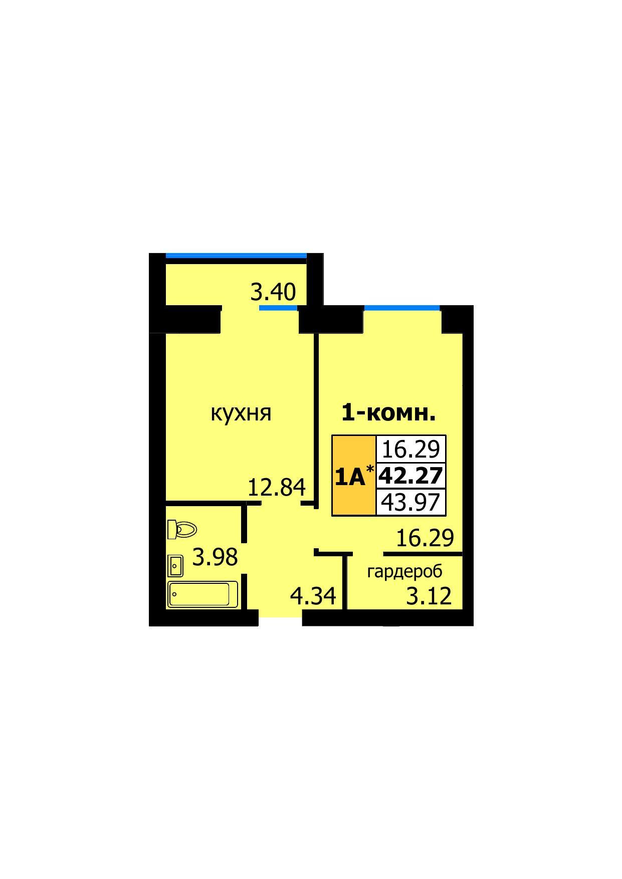 Общая площадь 44.3 м2