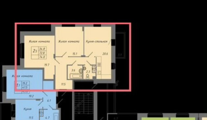 Общая площадь 72.7 м2