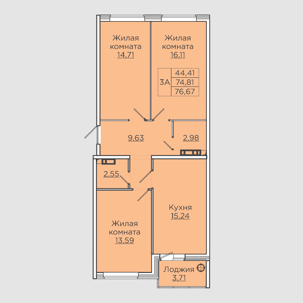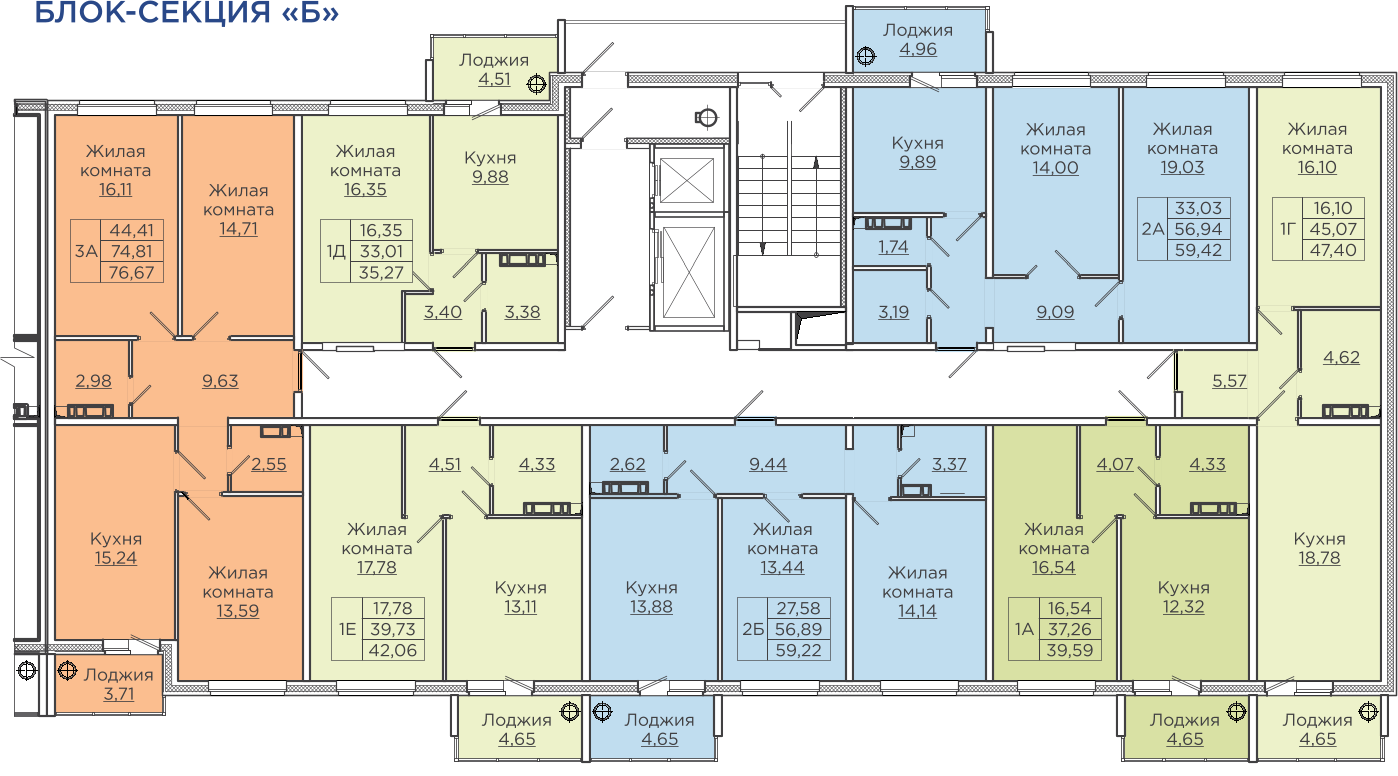 Общая площадь 76.7 м2