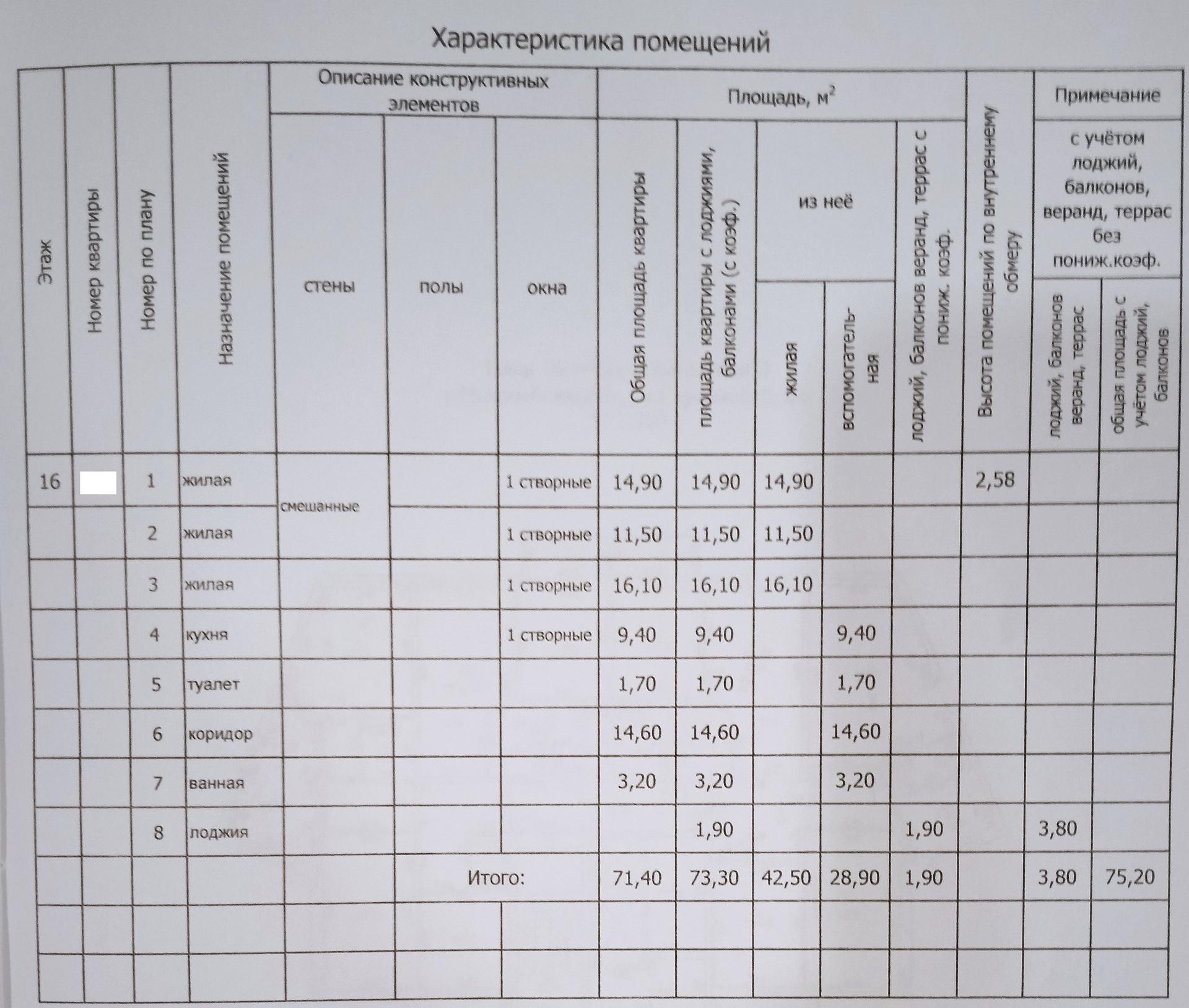 Общая площадь 71.4 м2