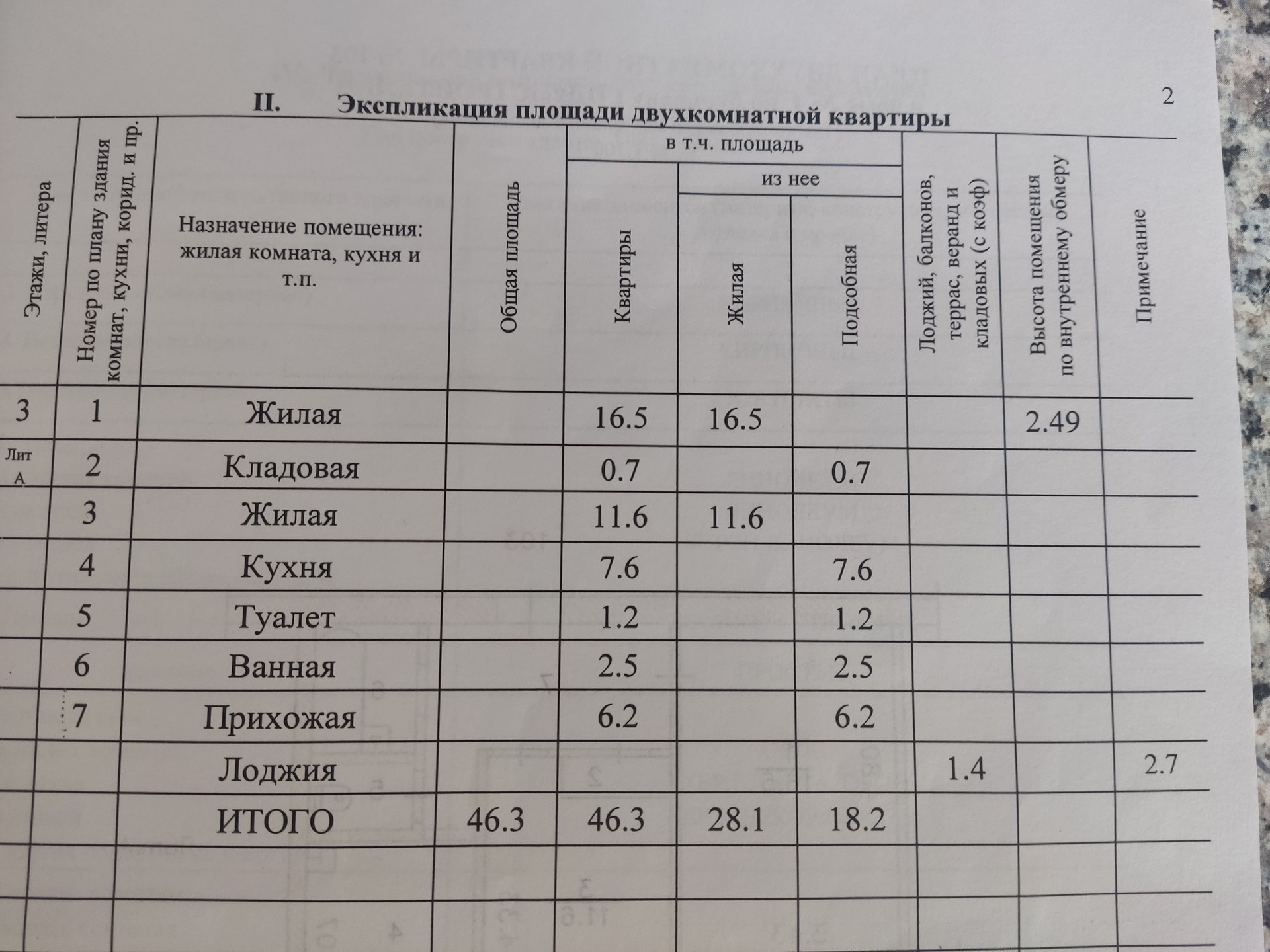 Общая площадь 46.3 м2