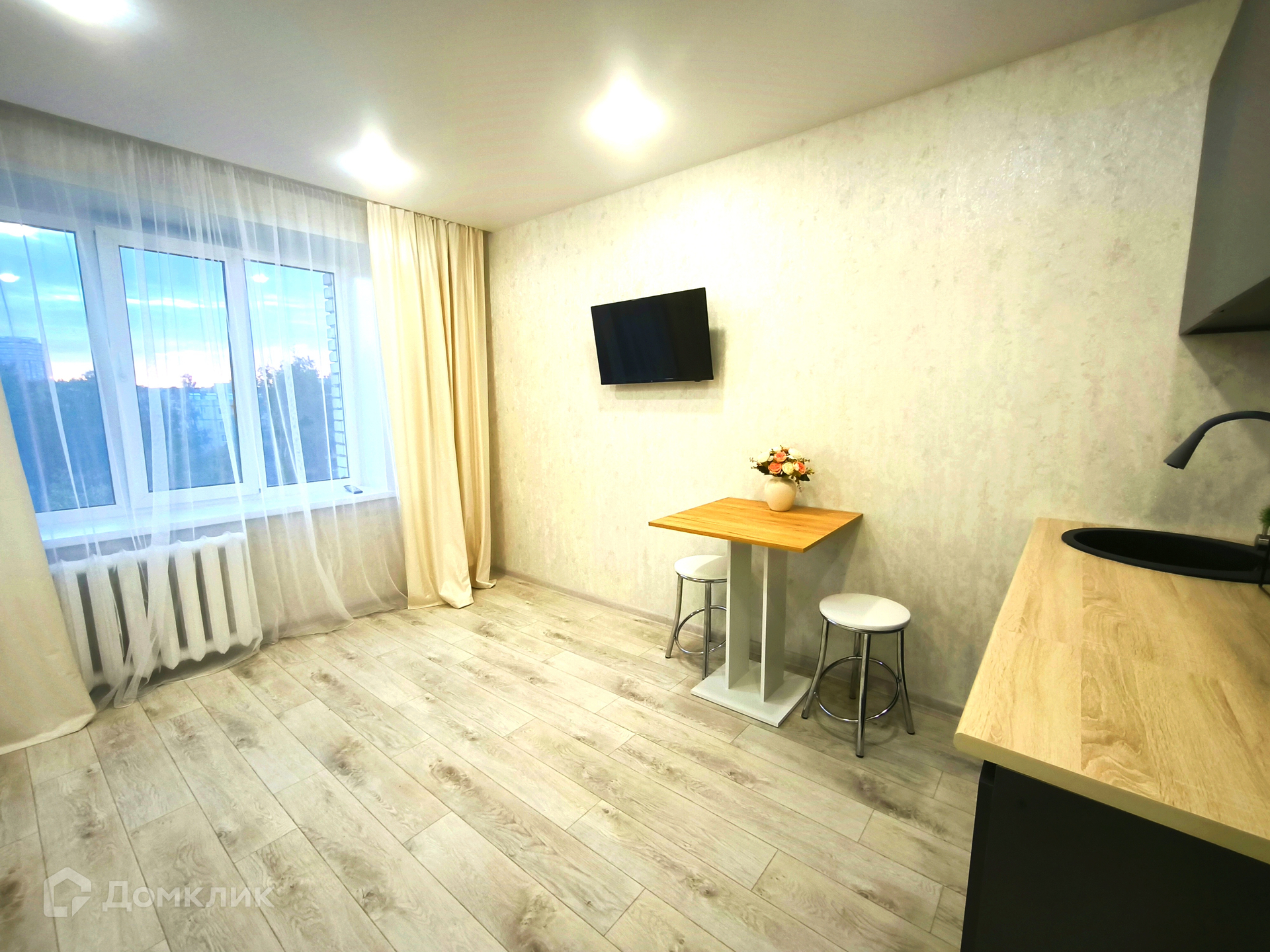 Продаю светлую, уютную студию по адресу: г. Новочебоксарск , Ельниковский проезд, 4А, на 6 этаже 9 этажного кирпичного дома. В студии оборудован свой санузел, проведена вода, произведен полный ремонт. После ремонта никто не проживал. Мебель и техника остаются. Отличное местоположение дома.  Парковка автомобилей - наземная. Развитая инфраструктура : школа, детский сад, рынок, остановки общественного транспорта, магазины, аптеки.  Все вопросы по телефону.