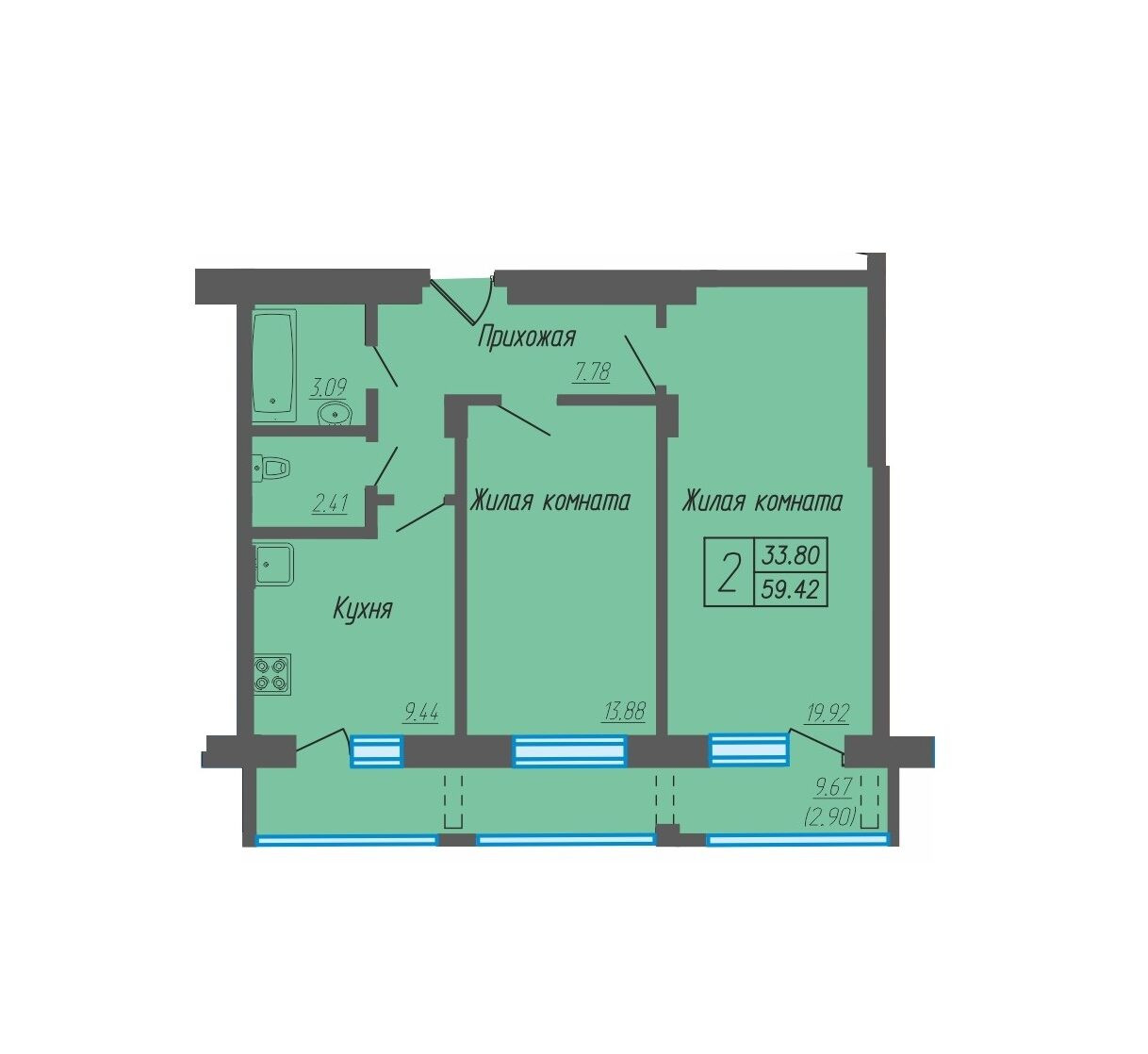 Общая площадь 60 м2