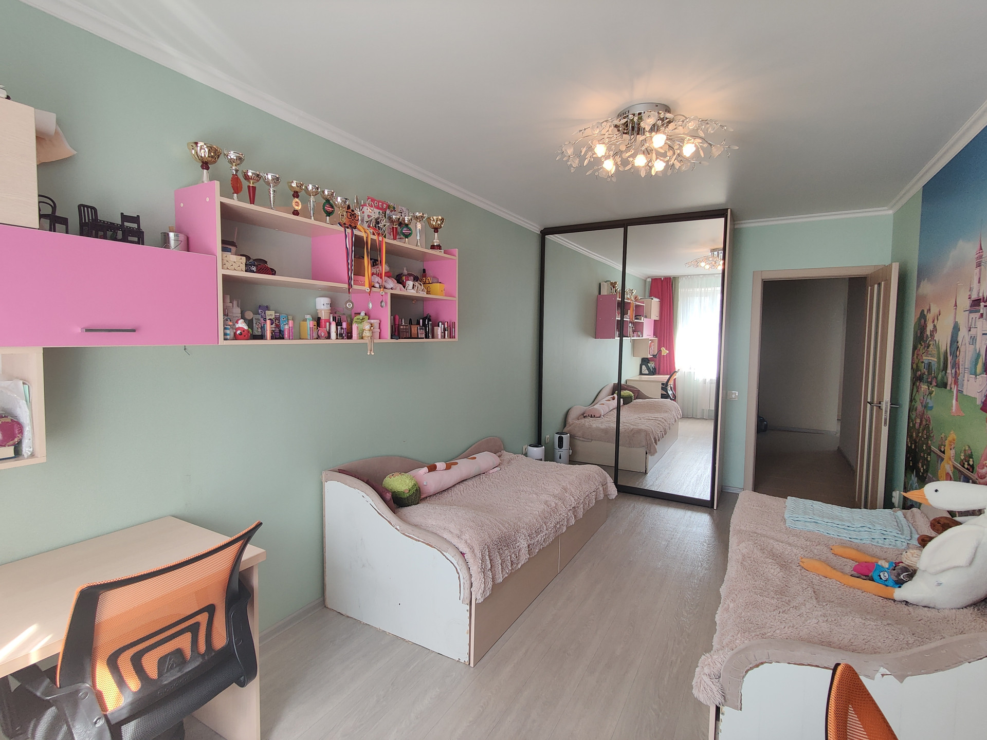 В квартире есть все необходимое для комфортного проживания: куxoнный гaрнитур, шкафы, кровати, диван.