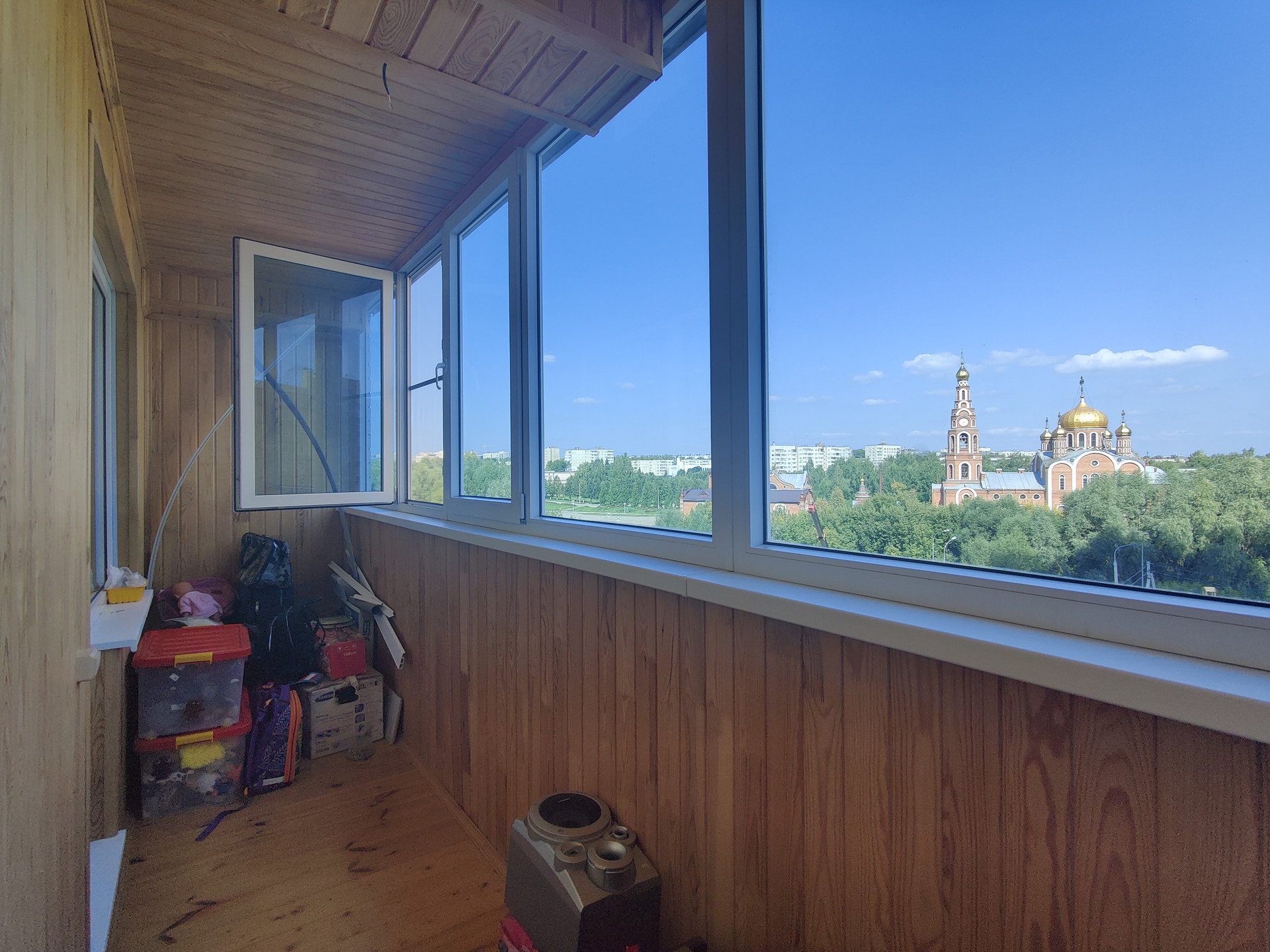 Большая лоджия - пластиковое остекление.