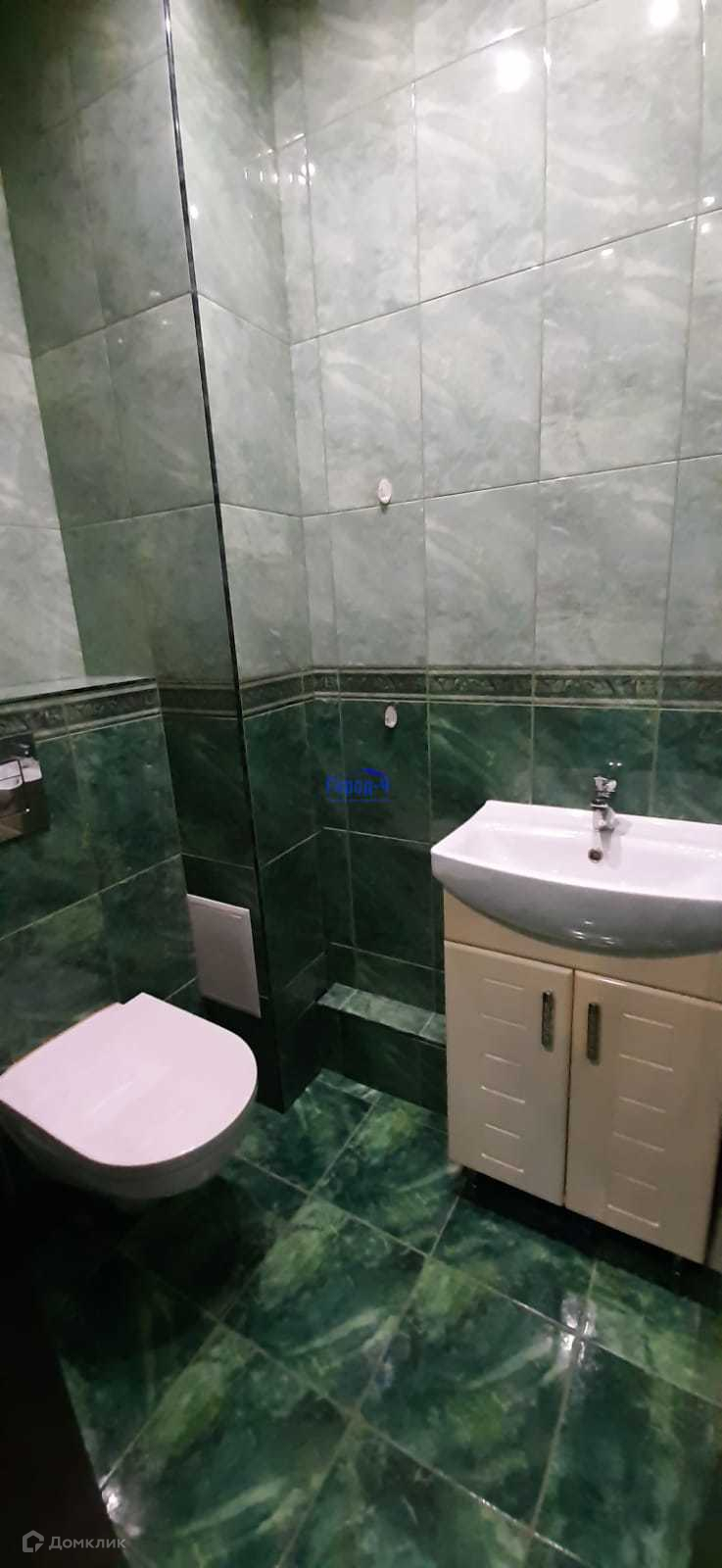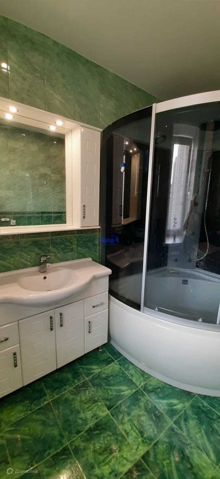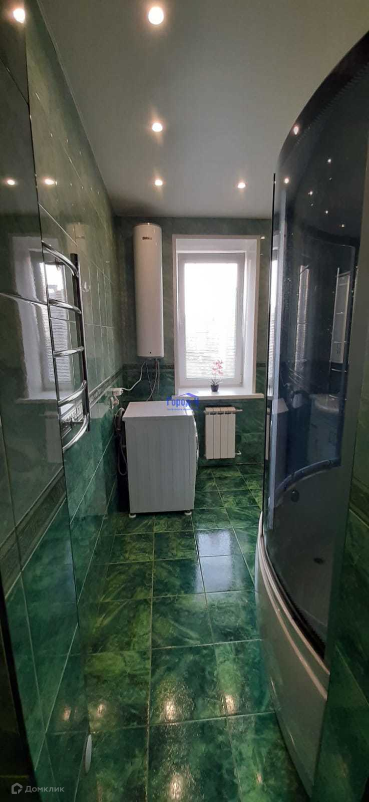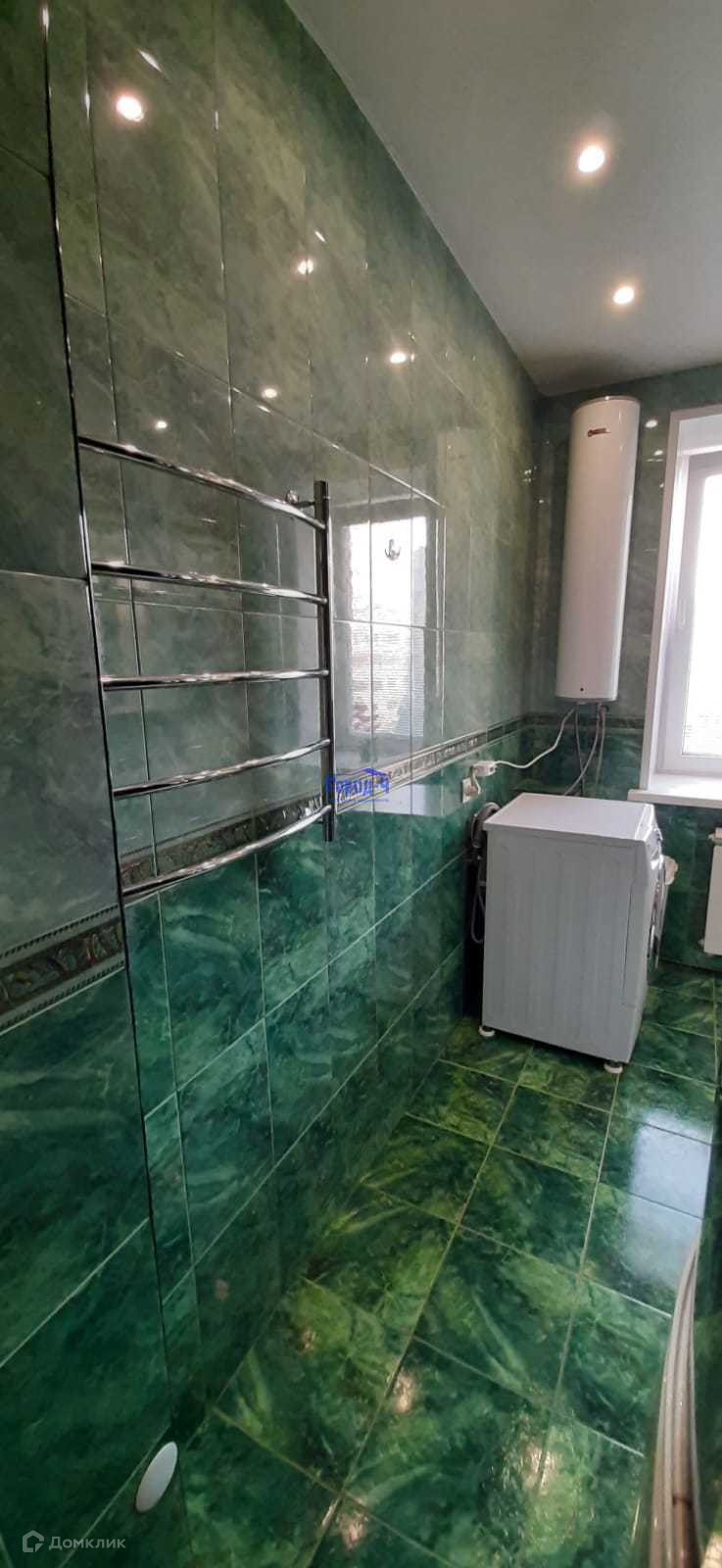 Отдельная ванная комната с окном и санузлом, где всегда сухо и свежо, общей площадью 8,7 м.кв. отделана изумрудной плиткой, унитаз производства "Великобритания" с инсталляцией. В ванной комнате установлен бойлер на 50 литров, огромный полотенцесушитель, душевая кабина 1,5 х 1,5 м.,