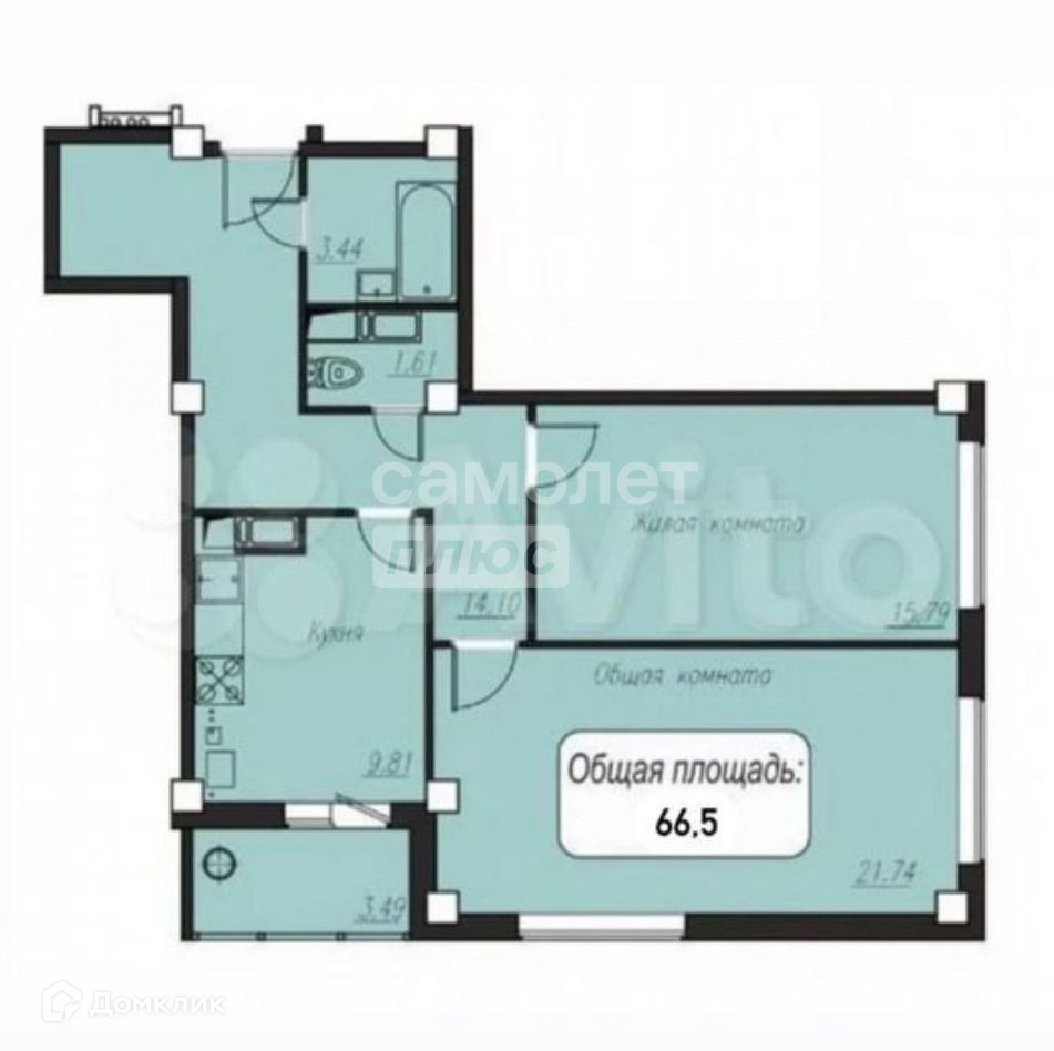Общая площадь 66.5 м2