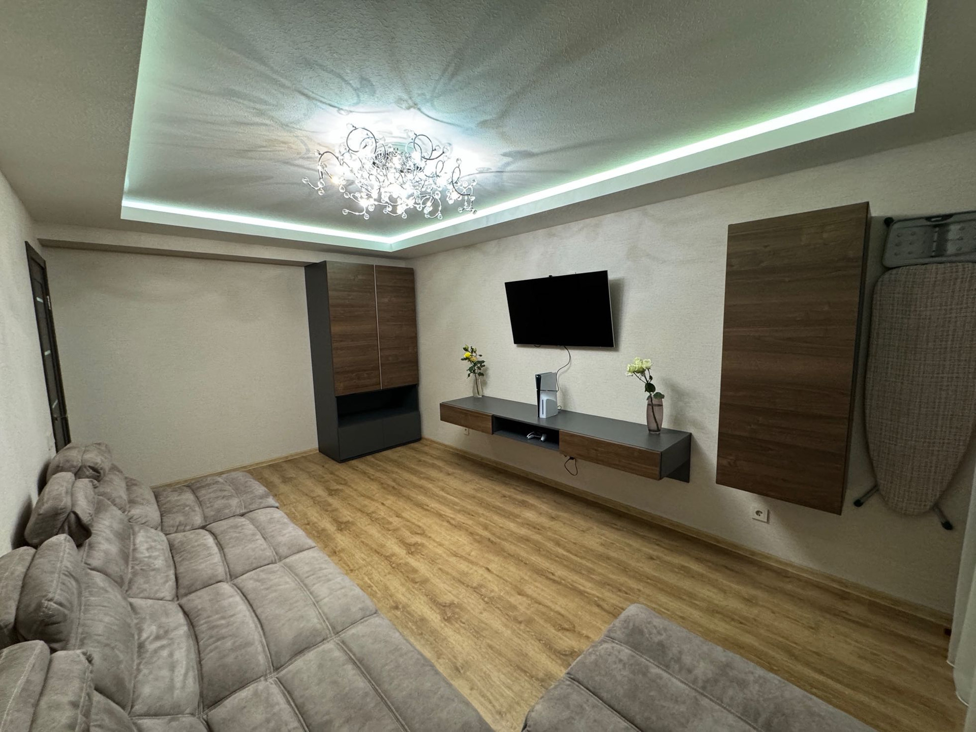 В зале короба из гипсокартона со скрытой подсветкой