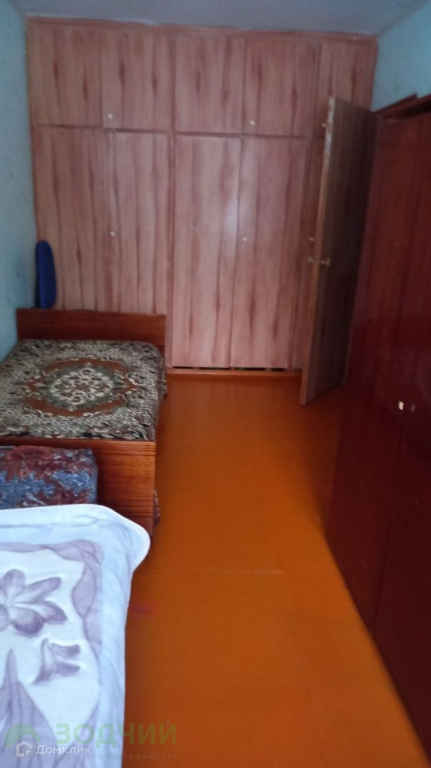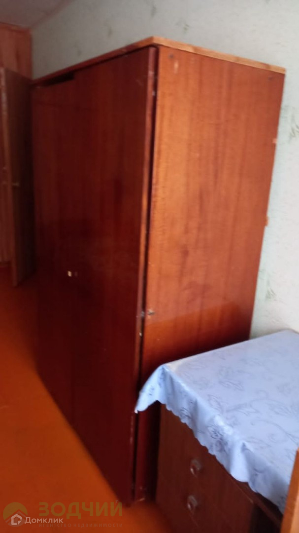 В комнате есть мебель: кровать, шкаф, диван