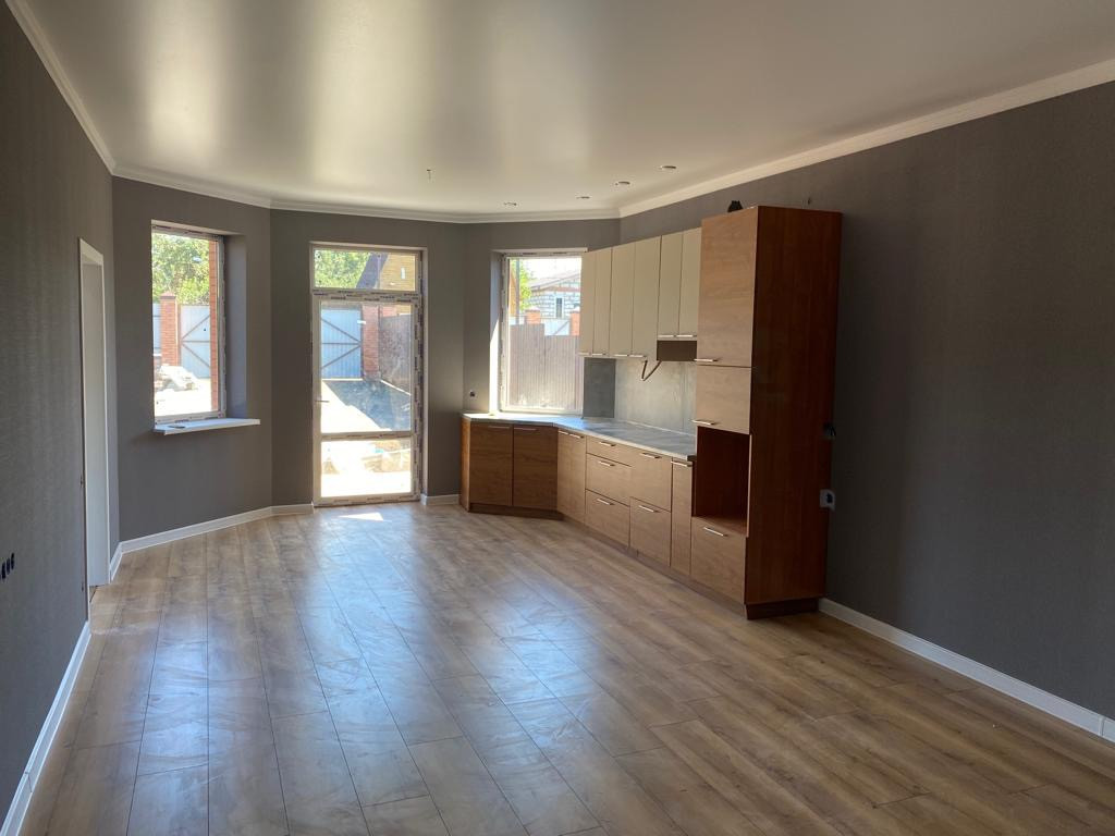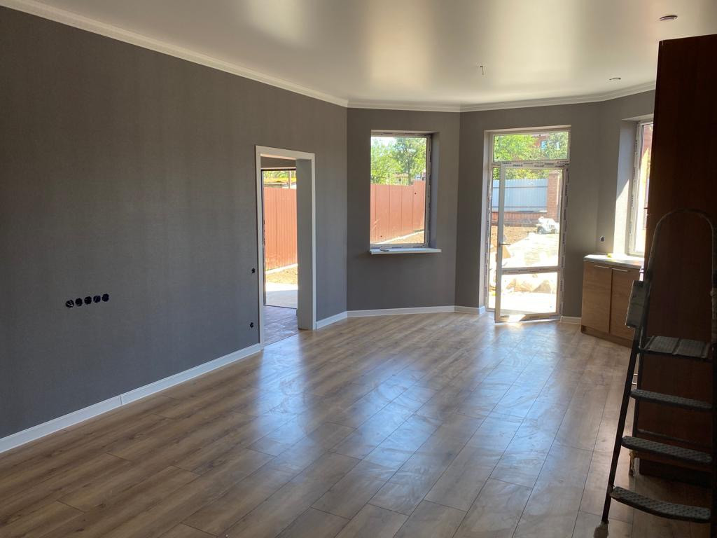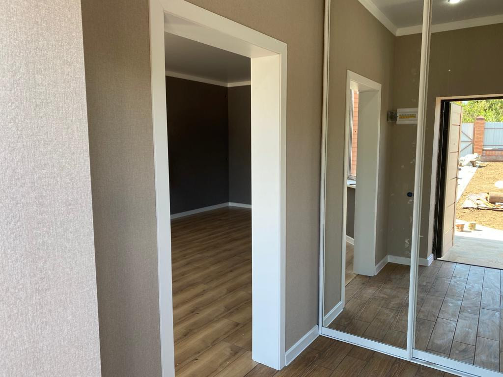Продаётся дом. Газ, свет, вода все коммуникации! Три спальни и кухня-гостиная 34 кв.м. Дом под чистовую отделку: штукатурка, электрика, стяжка, тёплый пол, навесной котёл, двери и окна.
