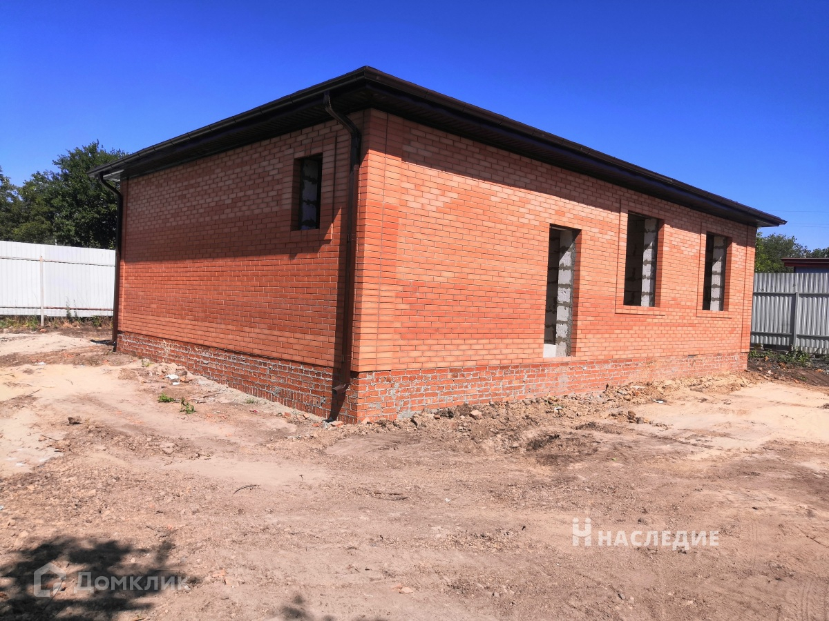Продажа  газоблочного обложенного кирпичом дома Ростовская обл., г. Новочеркасск, район - Ростовский выезд. Общая площадь 83 кв.м., участок 6 соток, фасад 20 метров, свет в доме, вода на участке. В доме 3 комнаты и кухня-гостиная. Гардеробная. Санузел раздельный. Все коммуникации в доме. Район газифицируют. Выход на террасу. Вода техническая. Будет готово под обои. Участок ровный правильной формы.