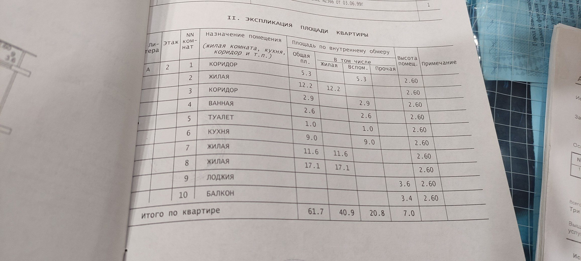 Общая площадь 61.7 м2