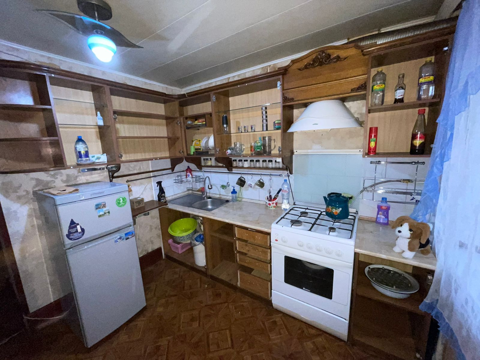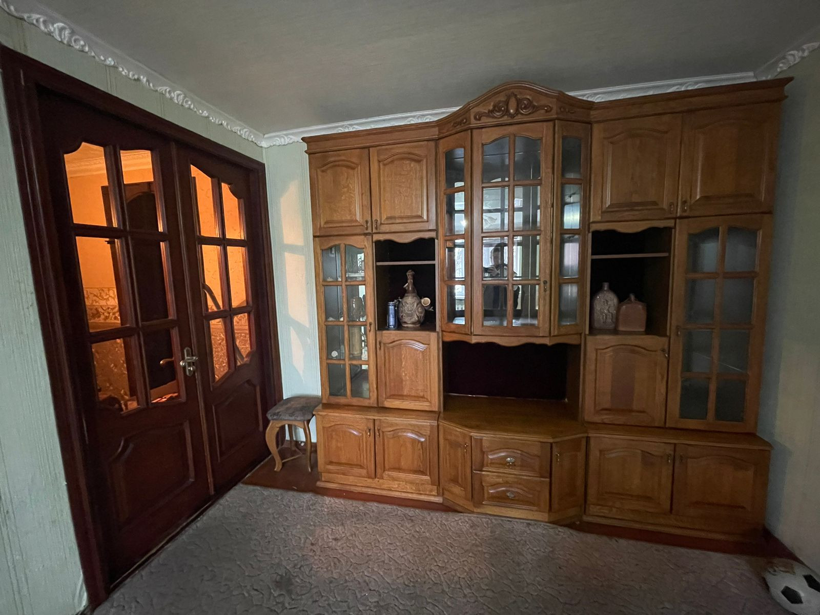 Мебель на фото по желанию остаётся, на кухне сняты фасады, а также межкомнатные двери и в санузлы,которые были сделаны на заказ из массива сосны в Ростове.
