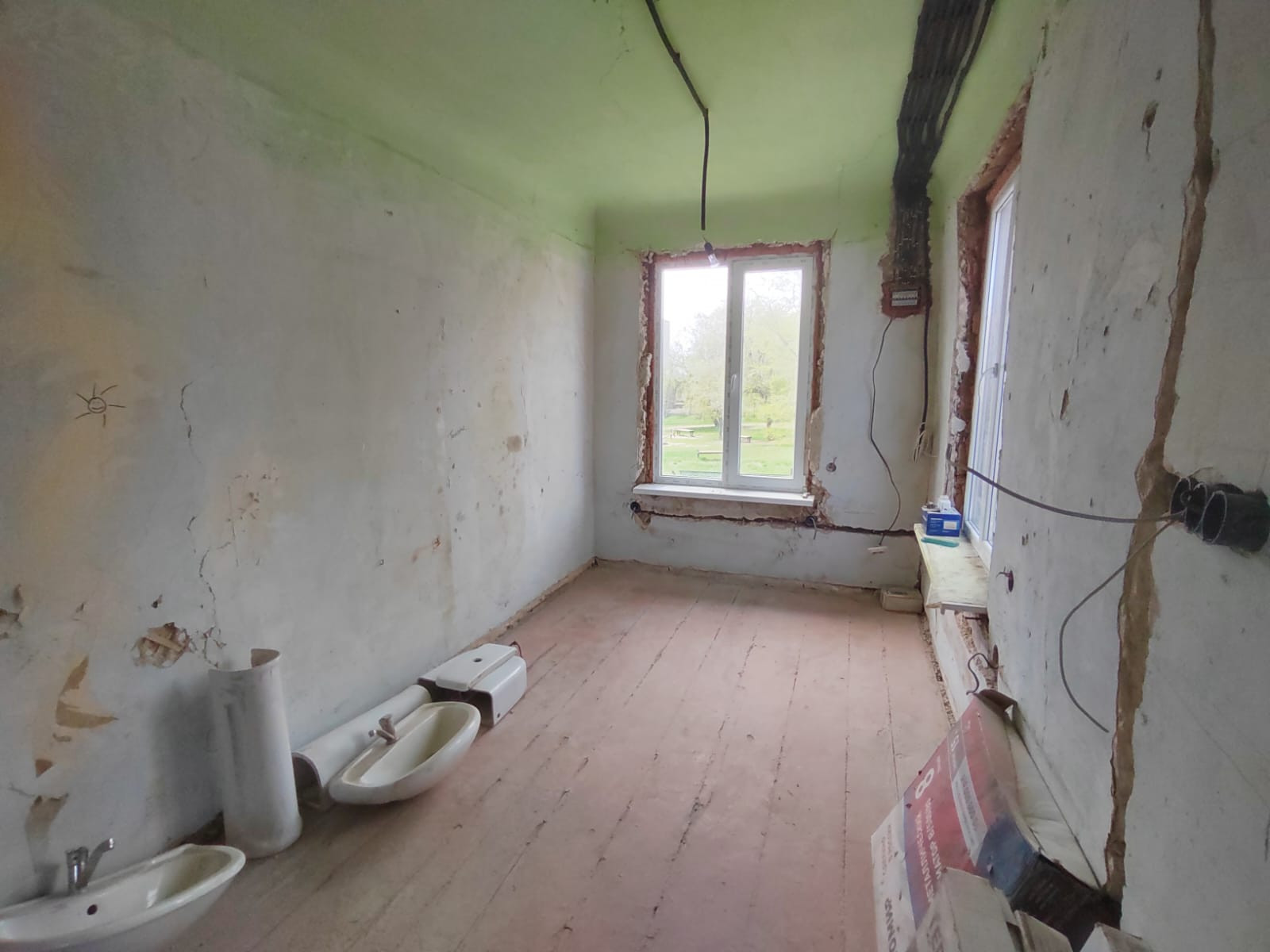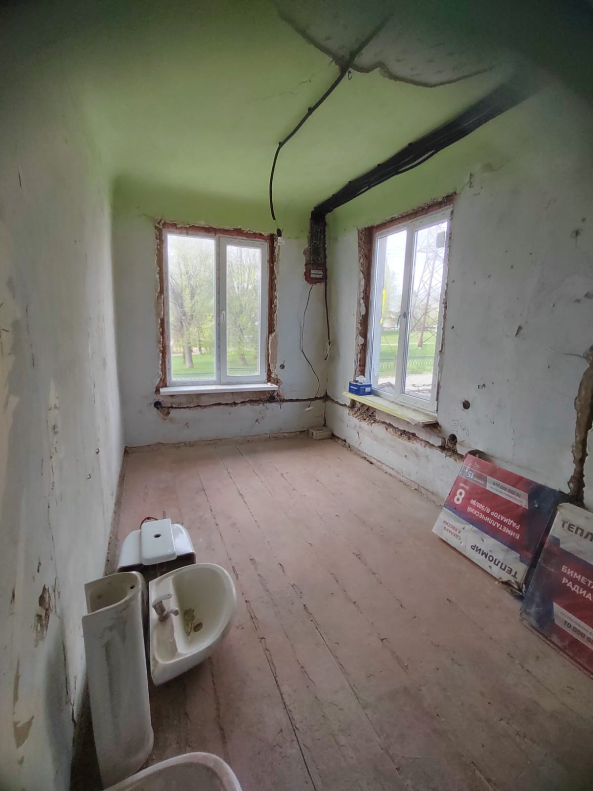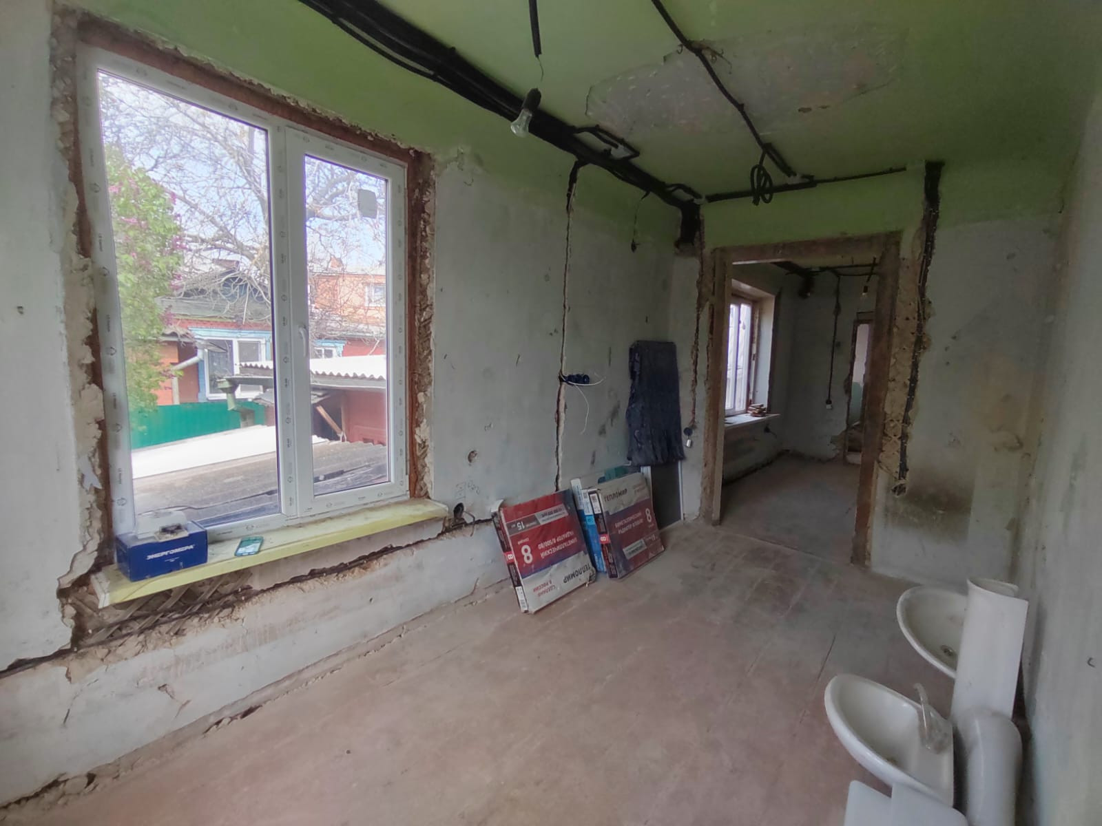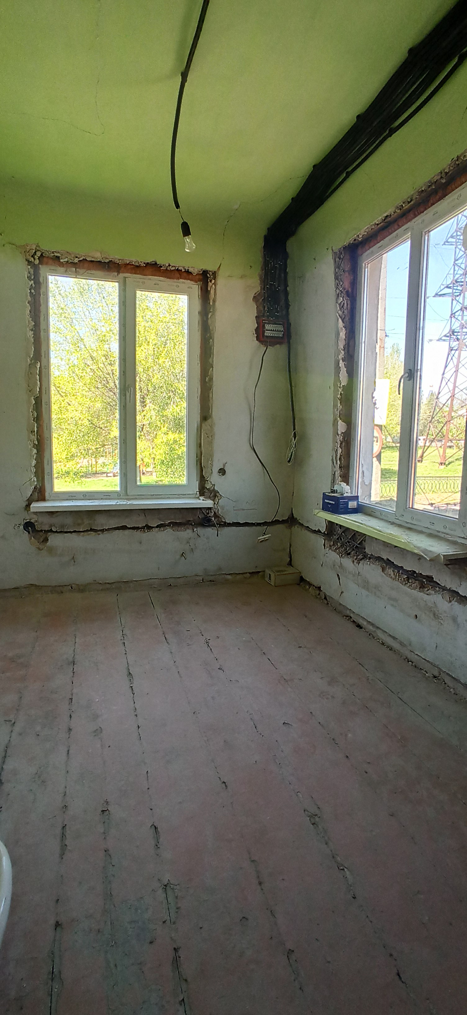 Установлены новые окна. Выполнена электропроводка.
