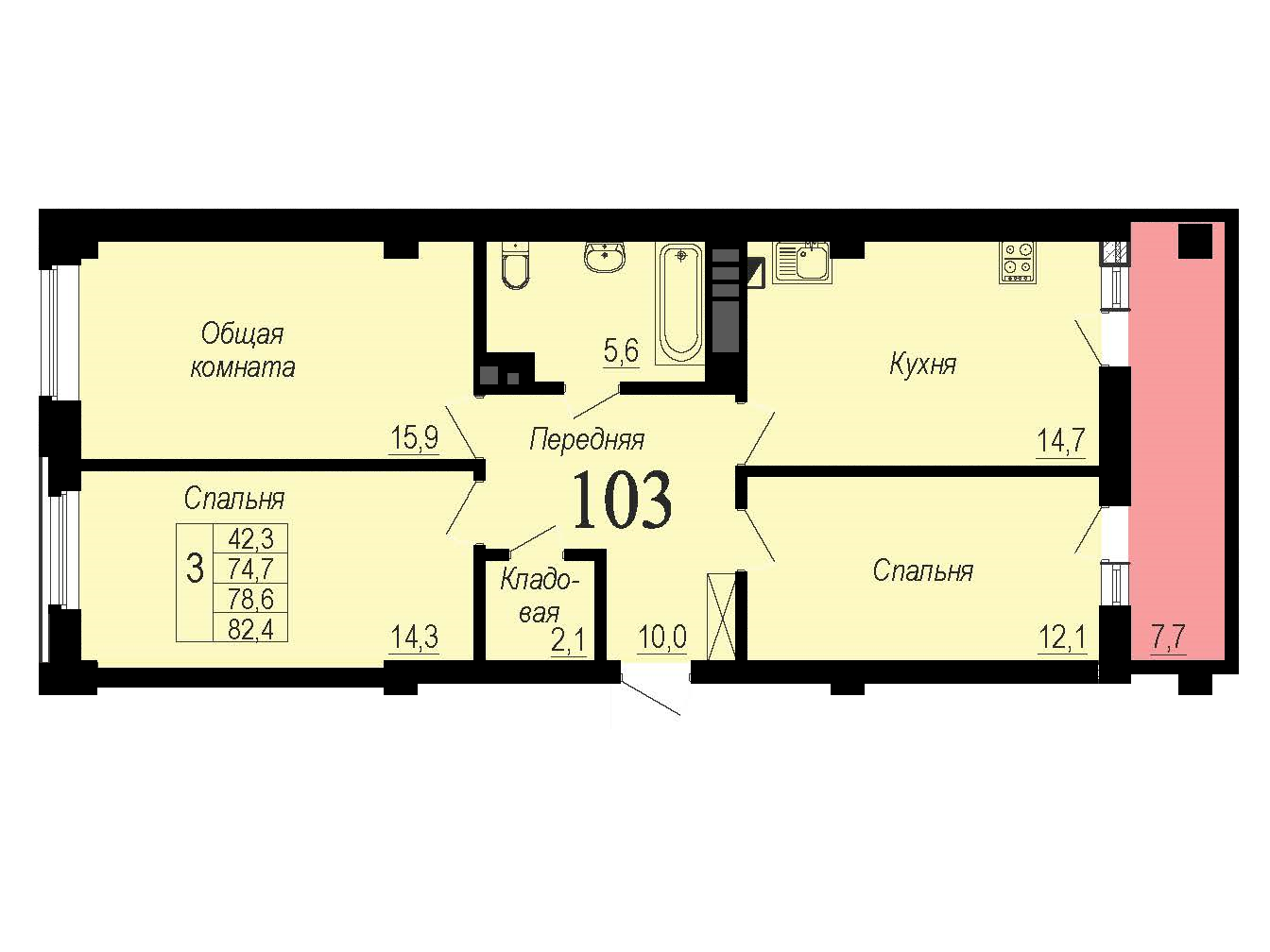 Общая площадь 82.4 м2
