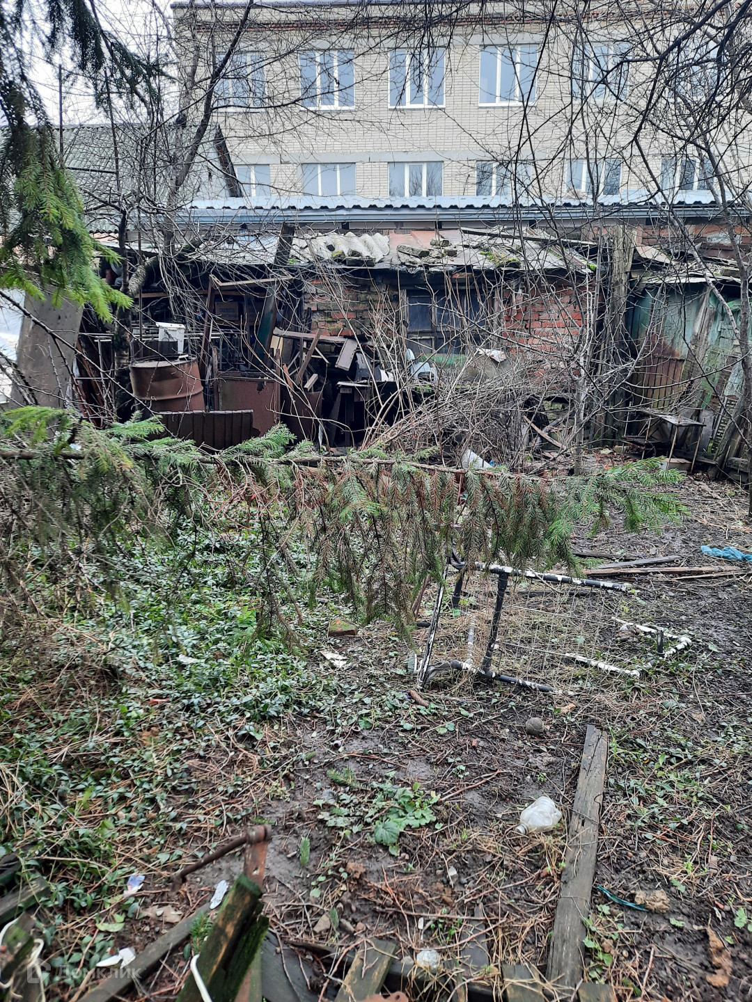 СЖФ. Без ремонта. В квартире 5 комнат, смежно - изолированных,  требующих ремонта. Есть вода, газ. Деревянные окна, двери. Потолки 2,5. Во дворе  имеется отдельный участок, гараж и заезд для машины. Общий двор с соседями.
