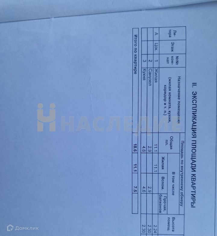 Общая площадь 18.6 м2