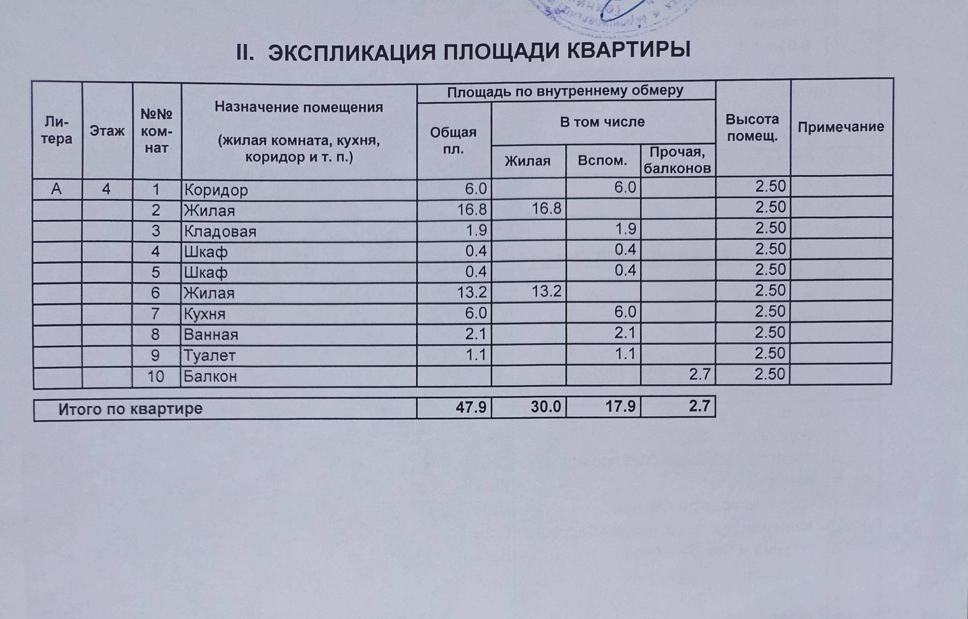 Общая площадь 47.9 м2