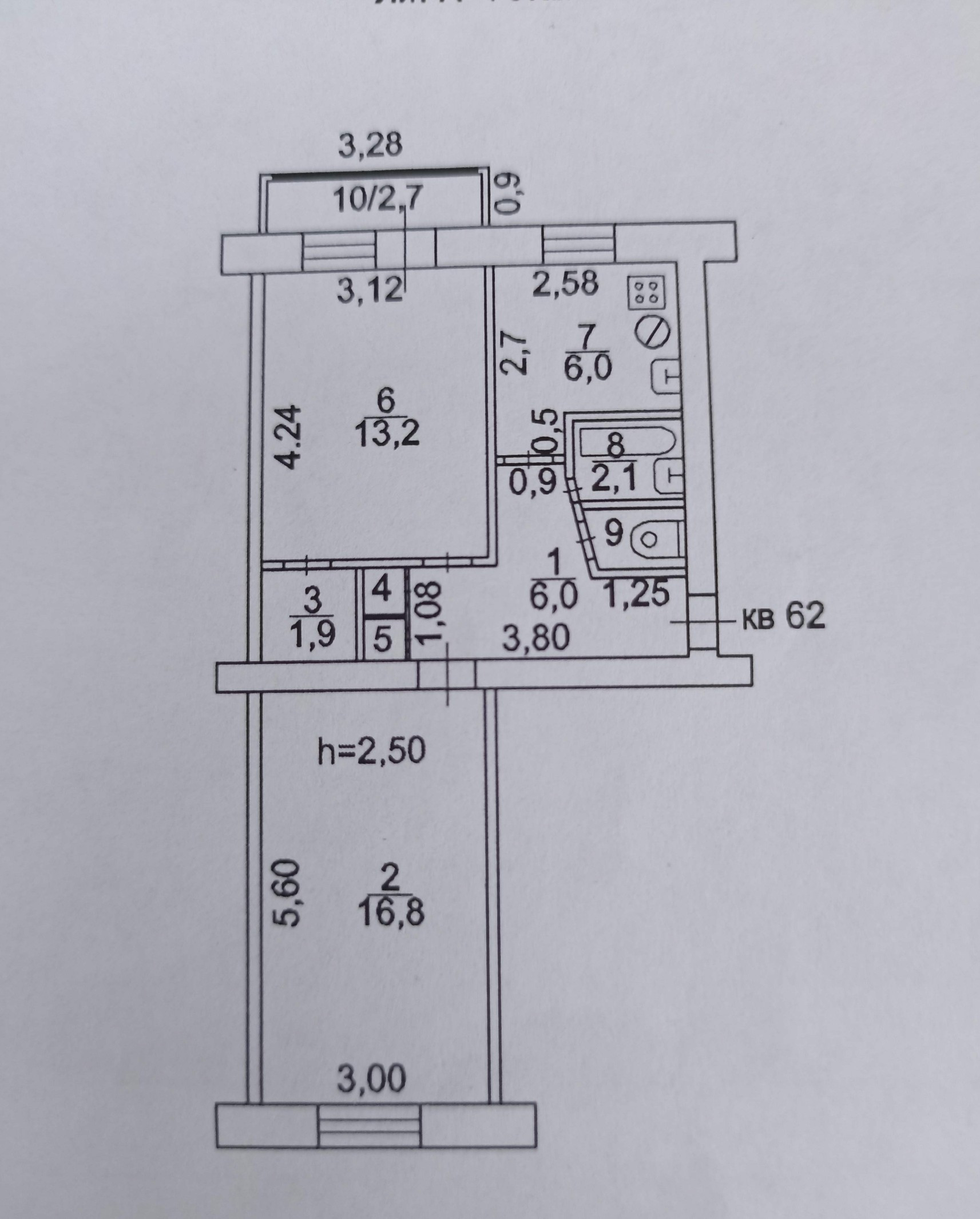 Высота потолков 2.5 м