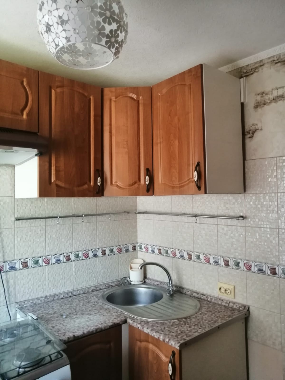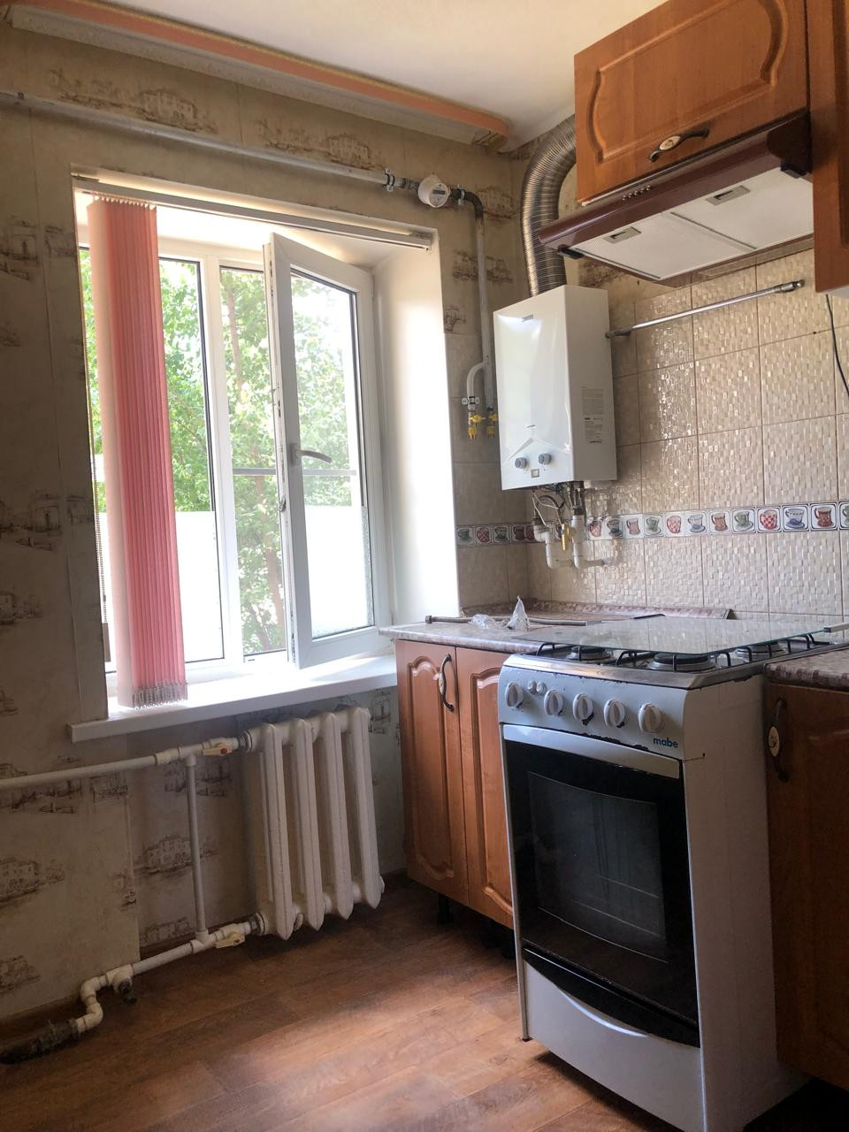 встроенная кухня, шторы, мебель.