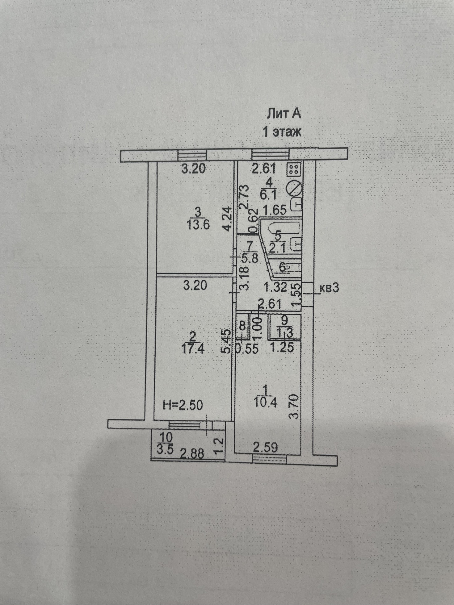 Высота потолков 3.2 м