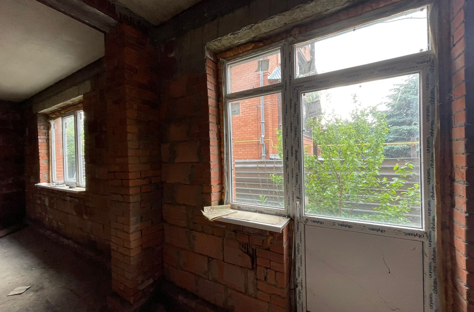 Материал изготовления: керамический блок + облицовочный кирпич. Перегородки кирпичные, перекрытия между этажами - железобетонные плиты. Все коммуникации заведены. Состояние - под черновую отделку.