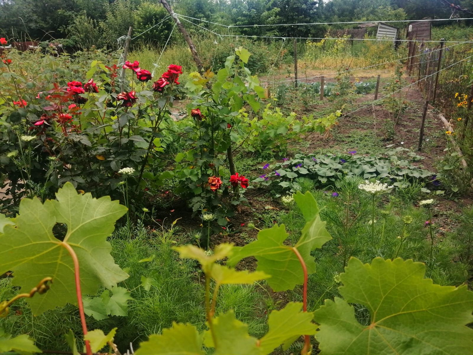 Участок ровный, правильной формы. Есть молодые деревья, груши, черешня, абрикос. Очень много кустарников малины, красной и чёрной смородины, ирги, винограда, Есть небольшой домик - бытовка для хранения инвентаря. Свет есть, и проходит по меже участка. Улица широкая, с твёрдым грунтовым покрытием, хороший подъезд, рядом постоянно живут люди.
