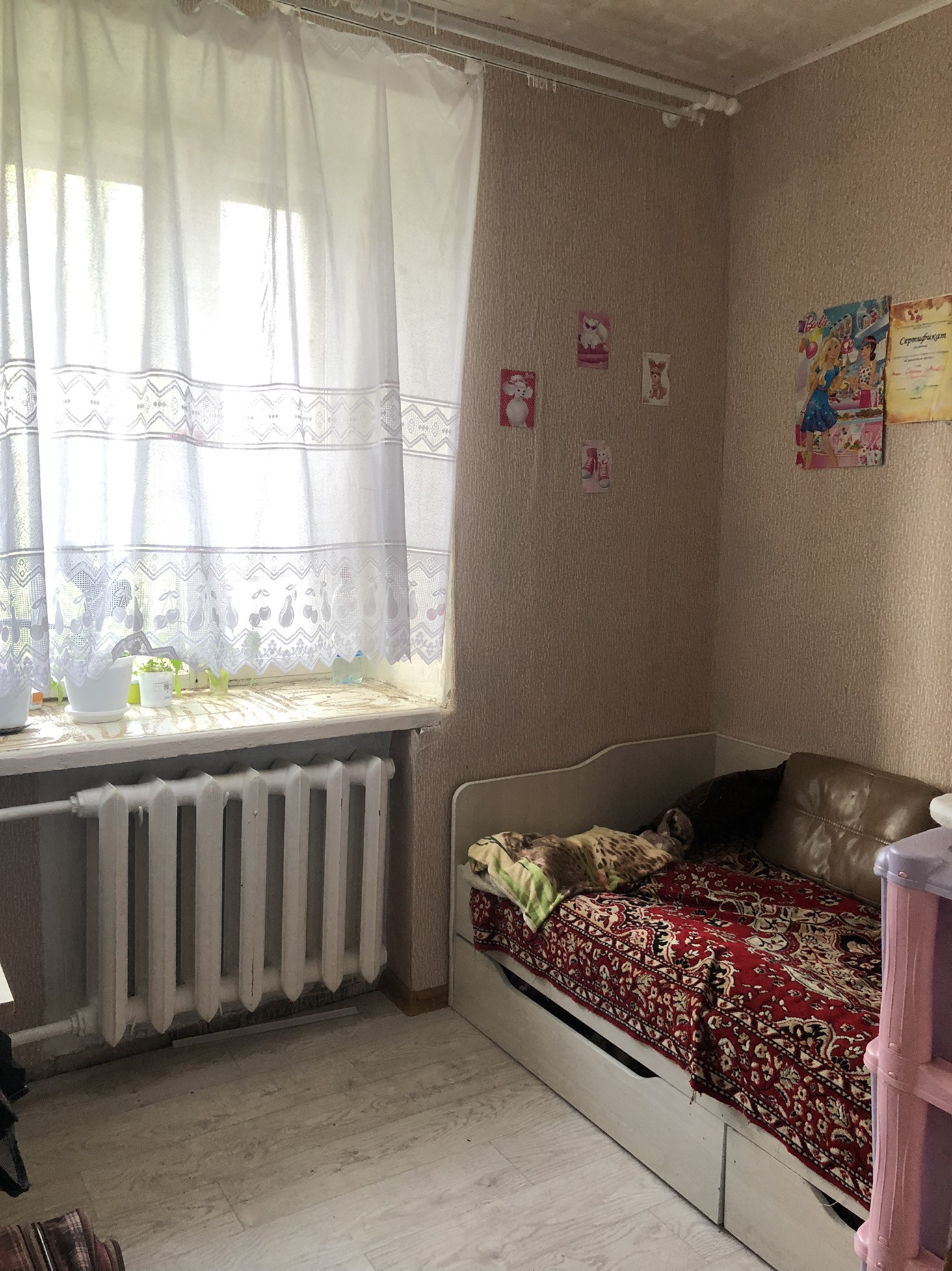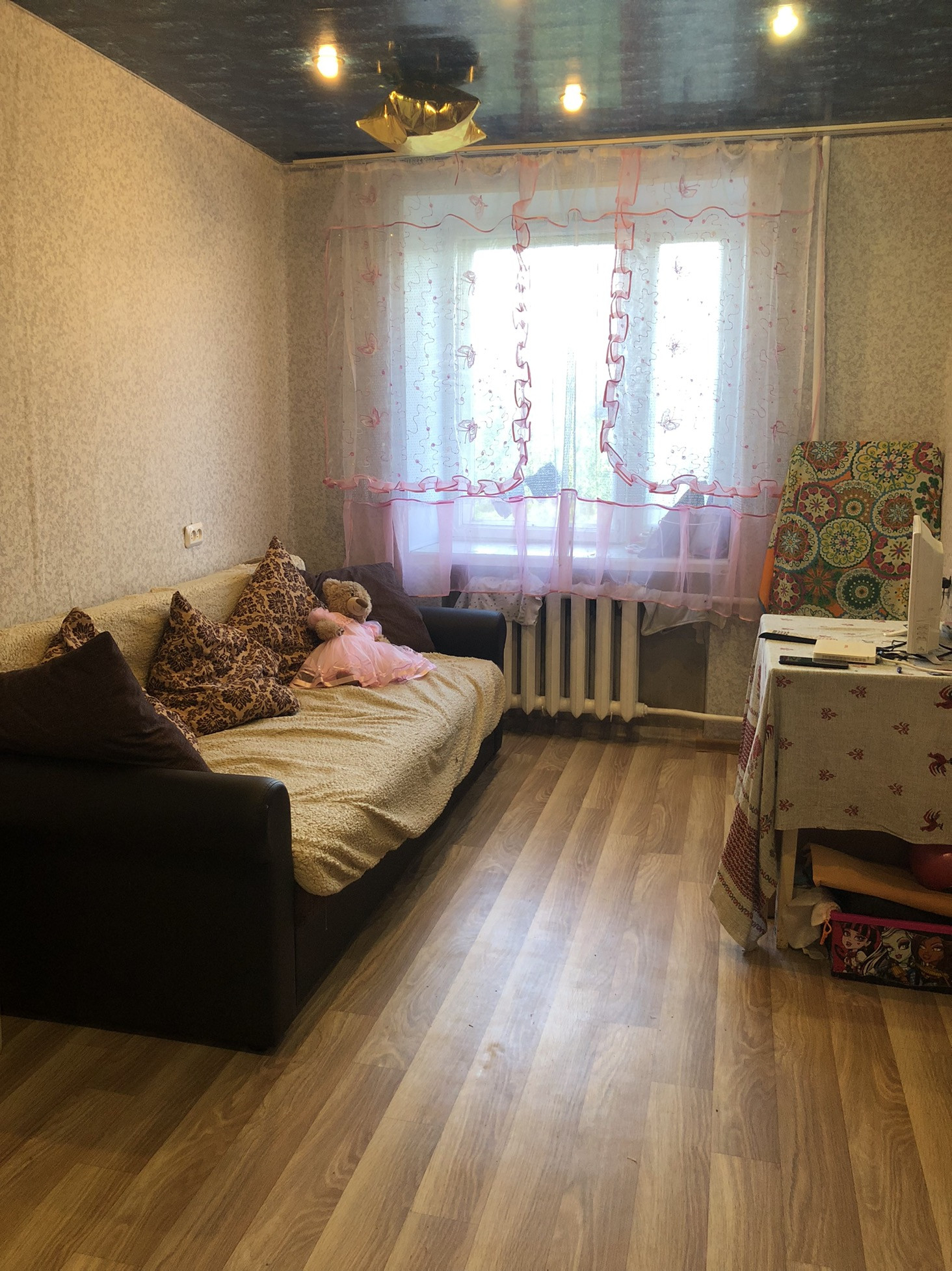 ПРОДАЮТСЯ две комнаты (смежные) в блок-секции на 4 комнаты (2 из которых наши) одна комната поделена на две части,благодаря чему, появилась зона детской и кухни. Есть туалет только принадлежащий нашим двум комнатам, собственник купил новый унитаз, который останется новому собственнику (стоит в коробке при входе, видно на фото) Душевая на всю секцию. Есть помещение, где находиться стиральная машина, оно за стенкой нашей комнаты, из него можно сделать подвод воды прямо в свою комнату, и не ходить на общую площадь. Очень удобно для семьи с ребенком, тк выделена детская зона. Один взрослый собственник.