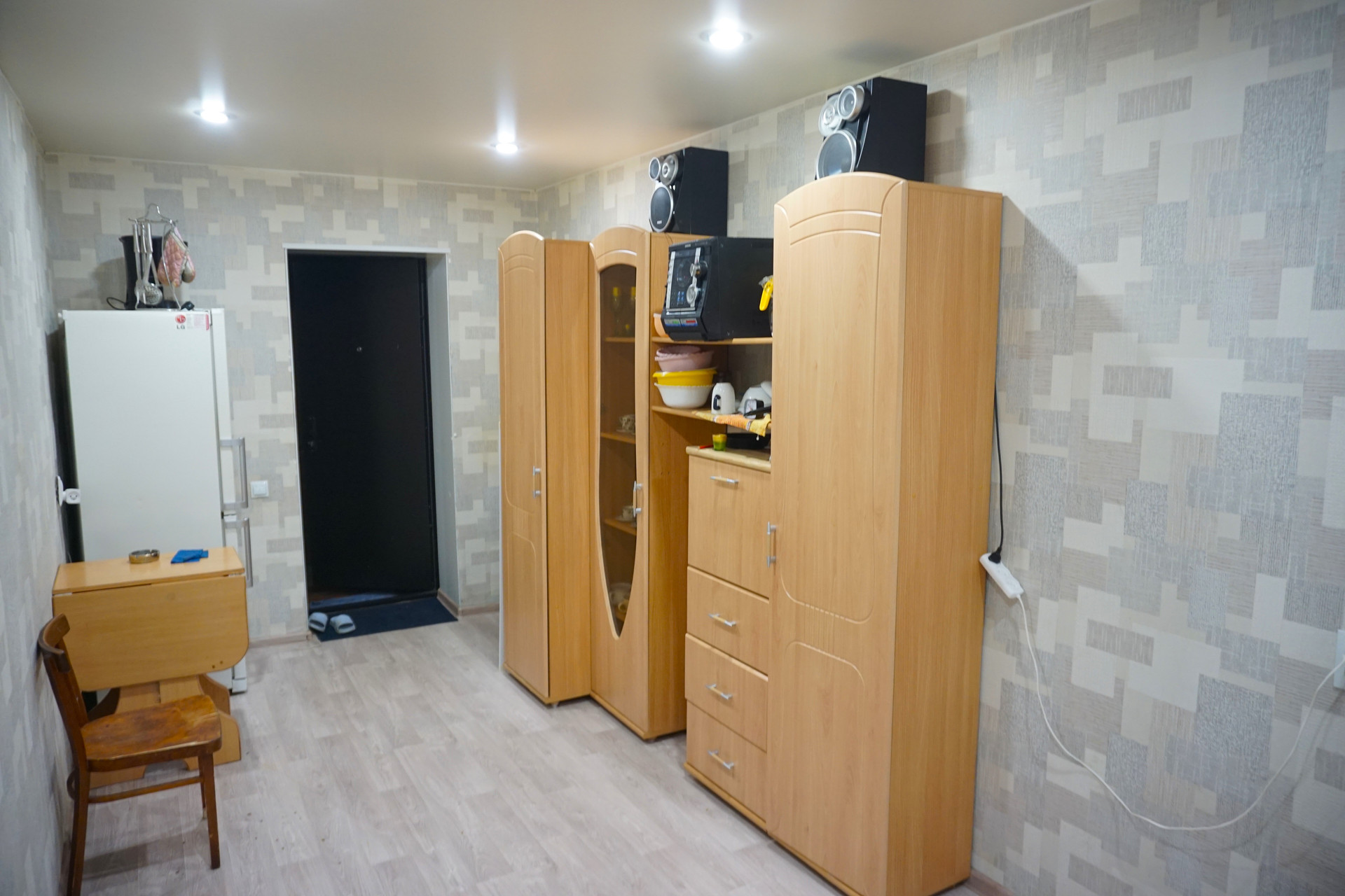 - Выровнены стены, поклеены обои