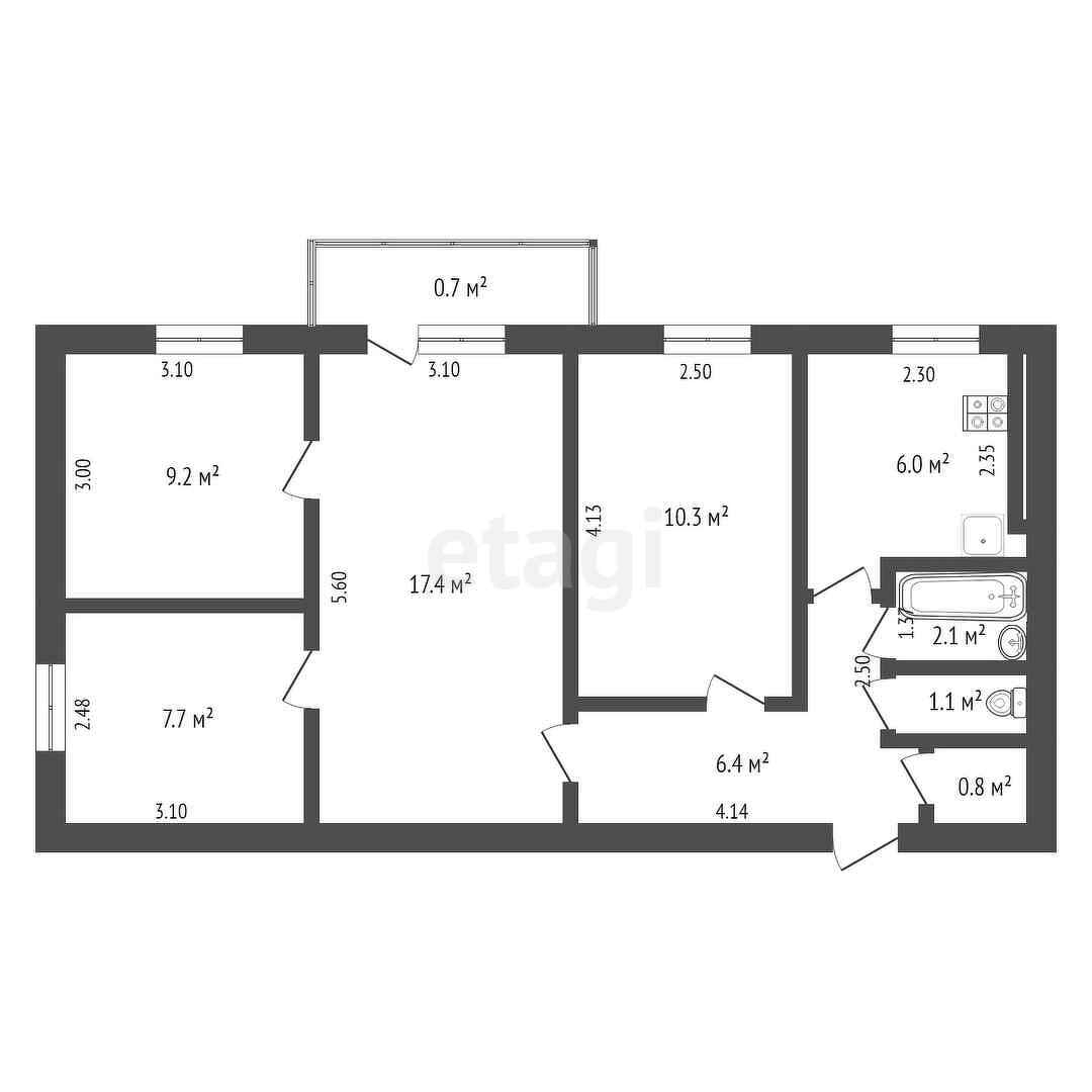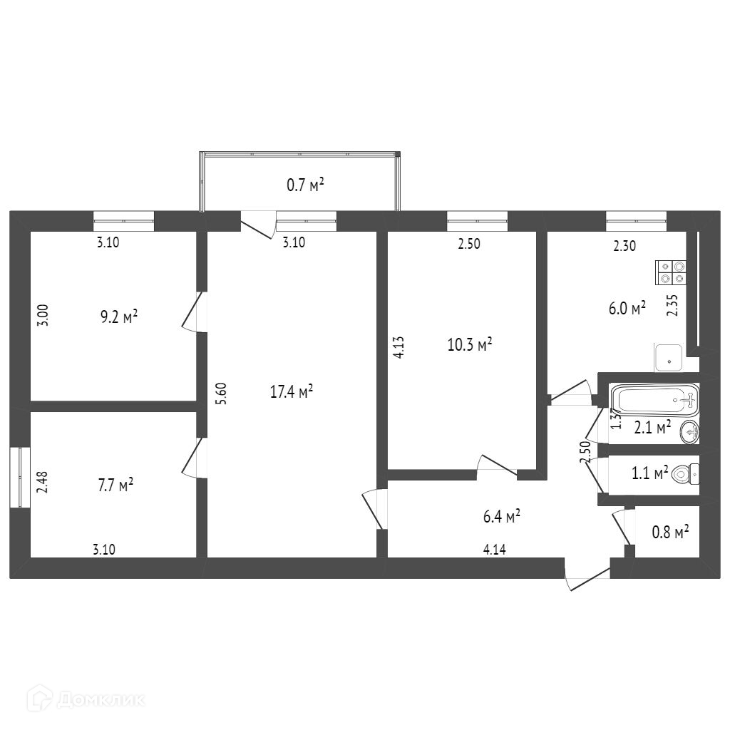 Общая площадь 61 м2