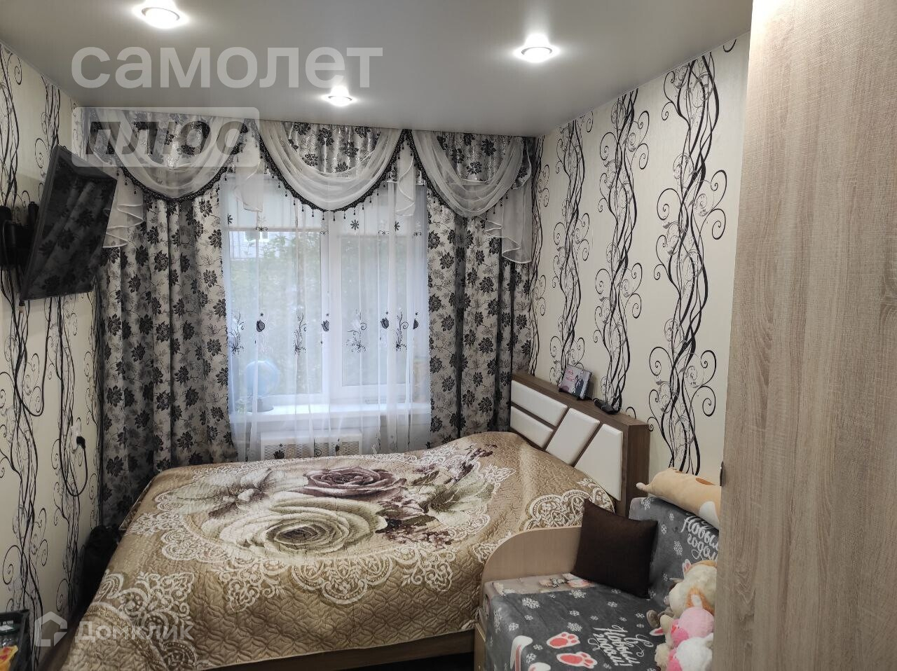 В квартире сделан хороший косметический ремонт, в комнатах установлены натяжные потолки, все окна заменены на пластиковые.