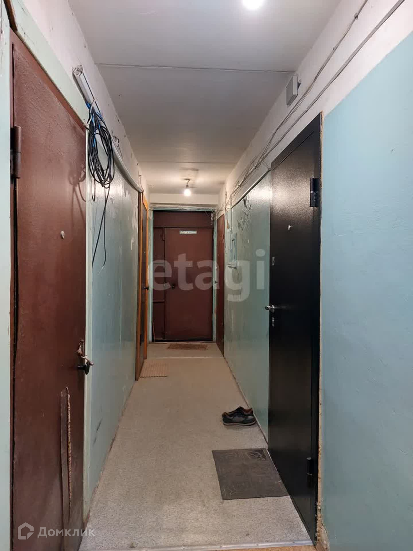 На этаже тамбур на несколько квартир, отгороженный от лестничной клетки металлической дверью. Соседи спокойные.