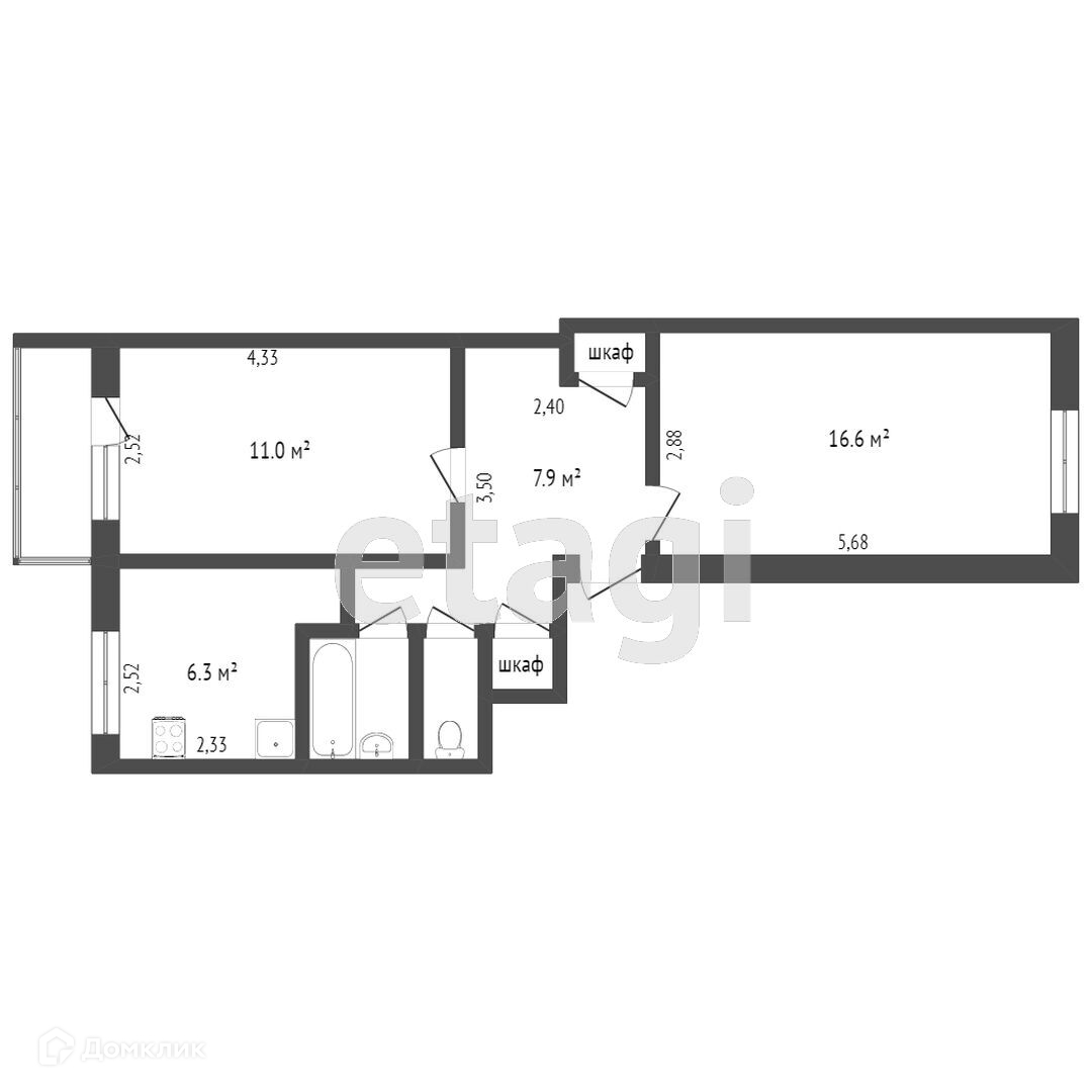 Общая площадь 46.4 м2