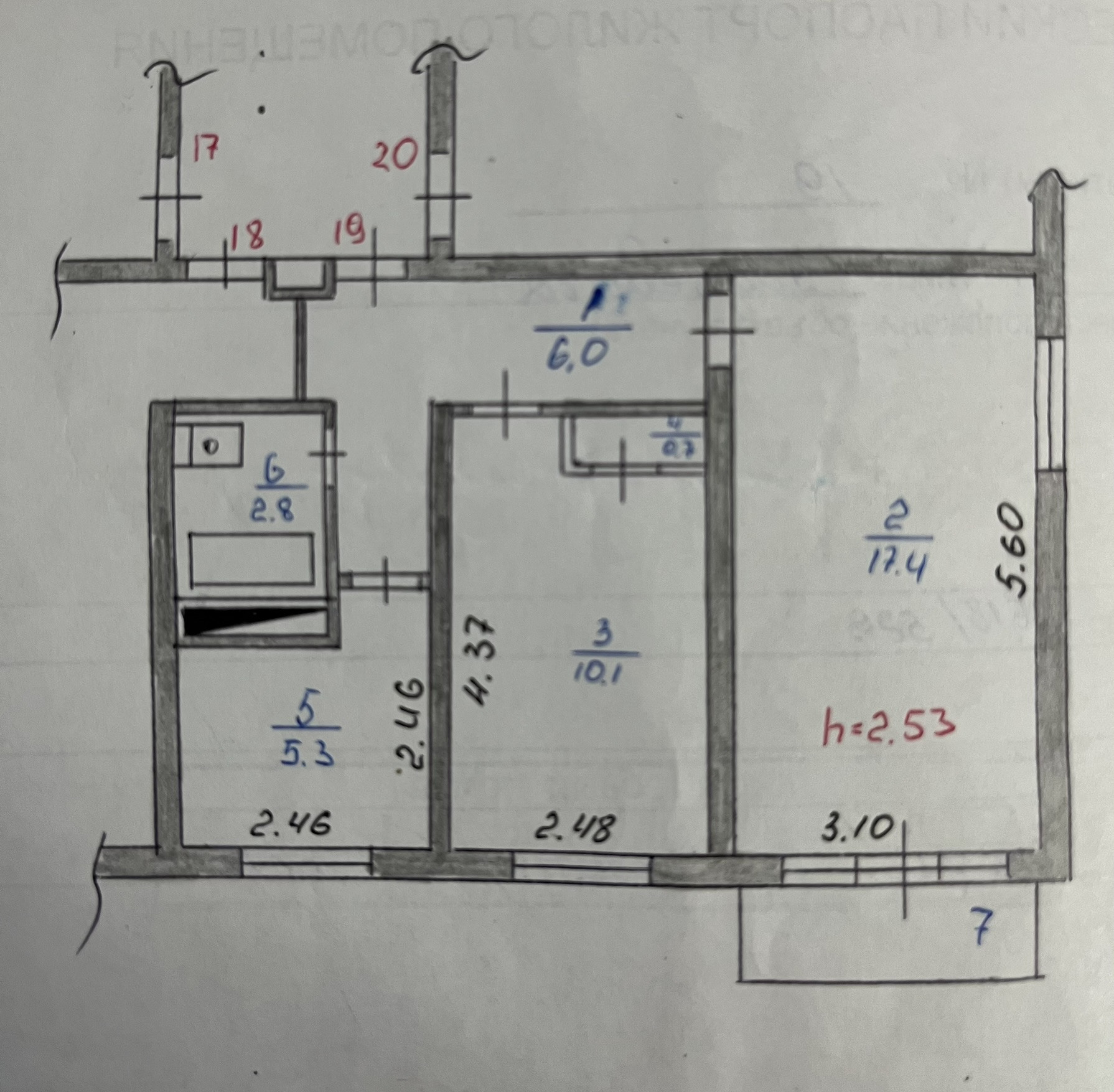 Площадь кухни 5.3 м2