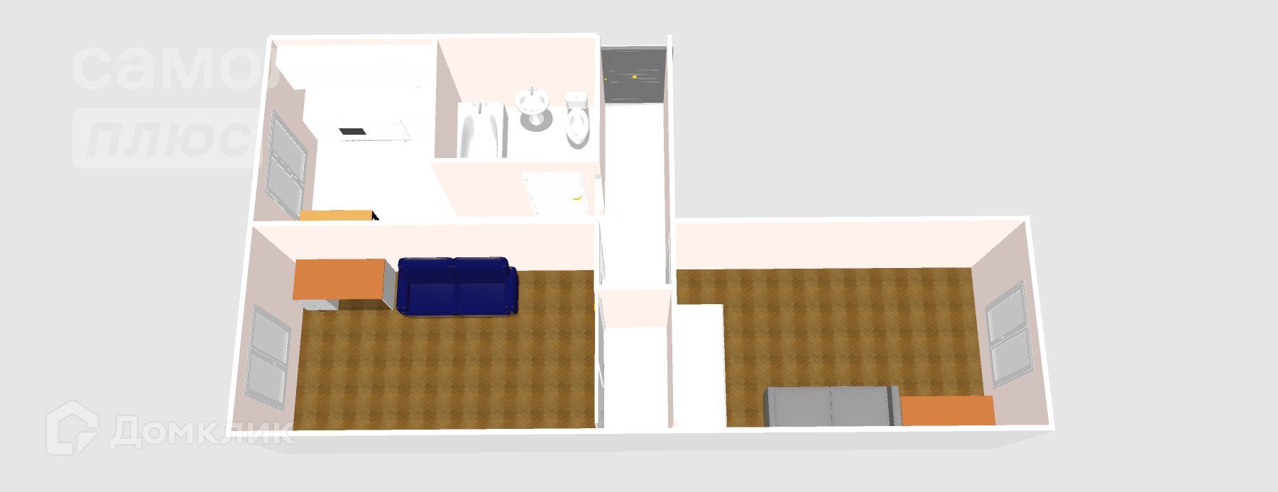 - Санузел совмещен