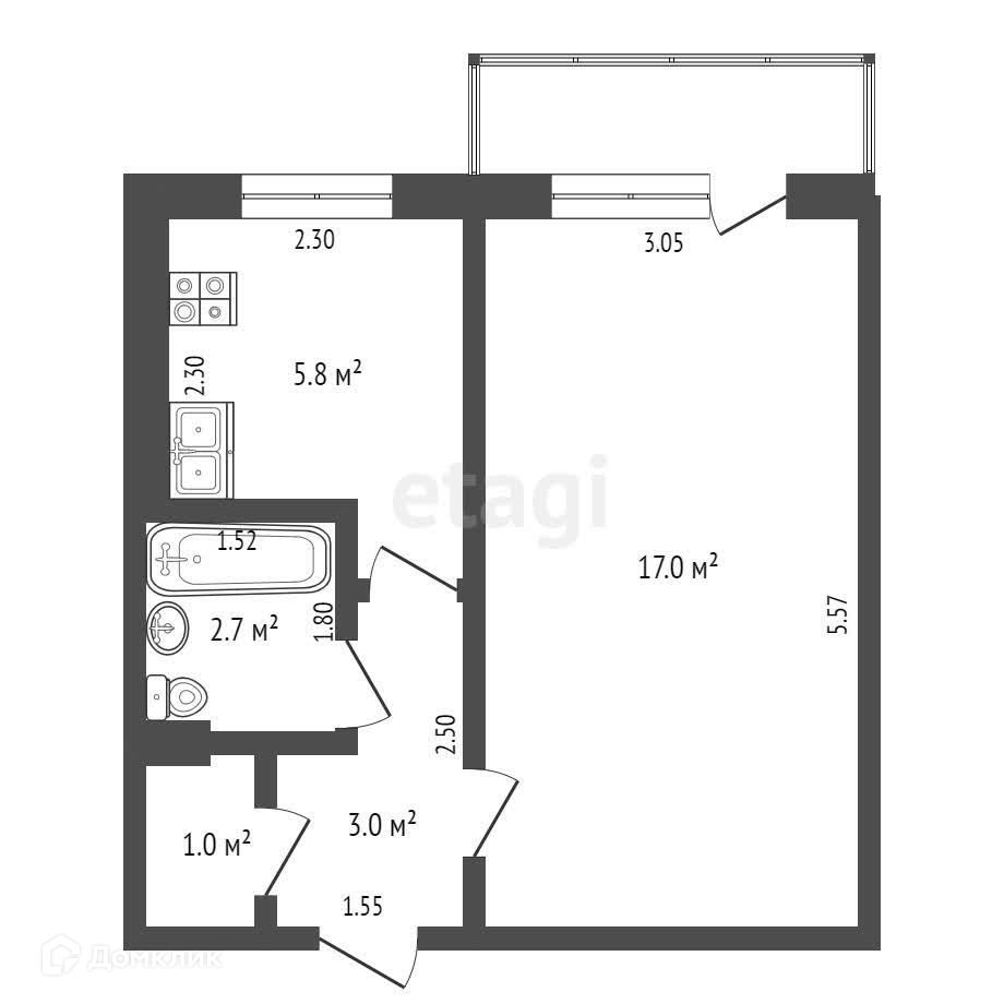 Площадь кухни 5.8 м2