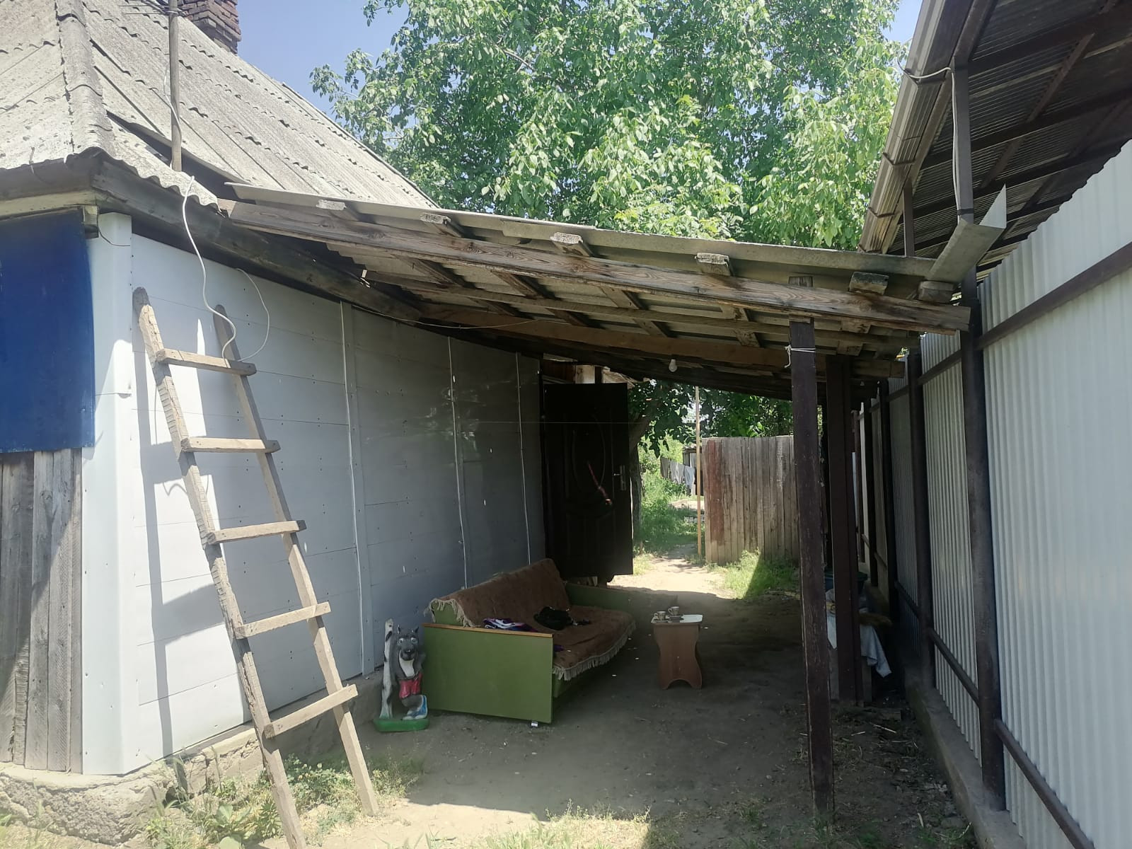 забор новый, есть плодовые деревья