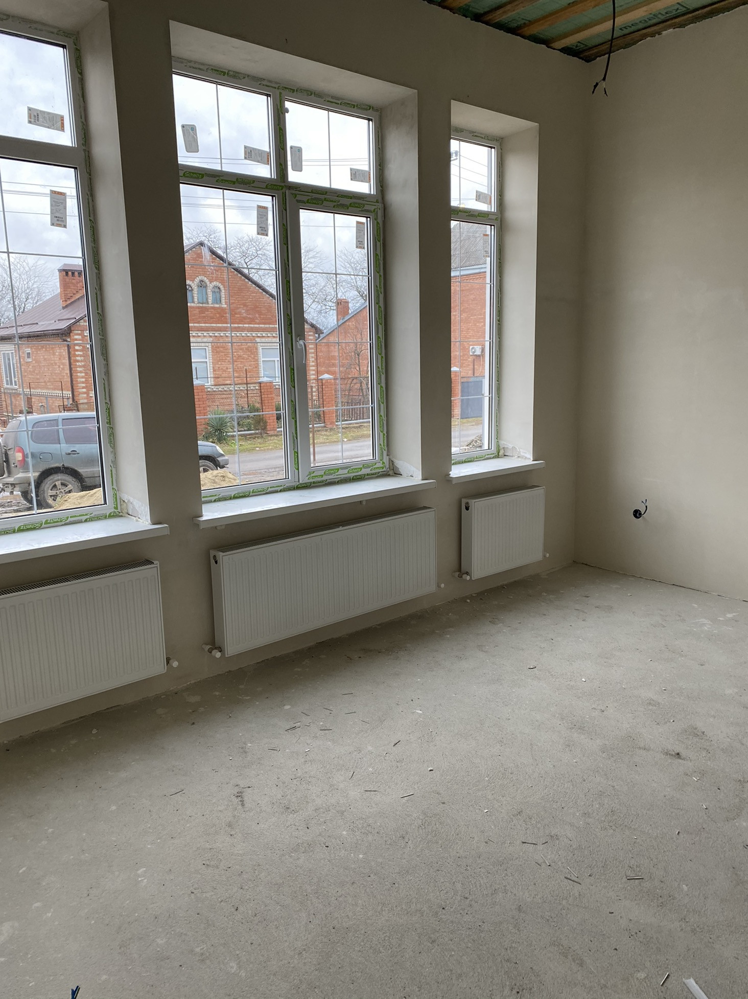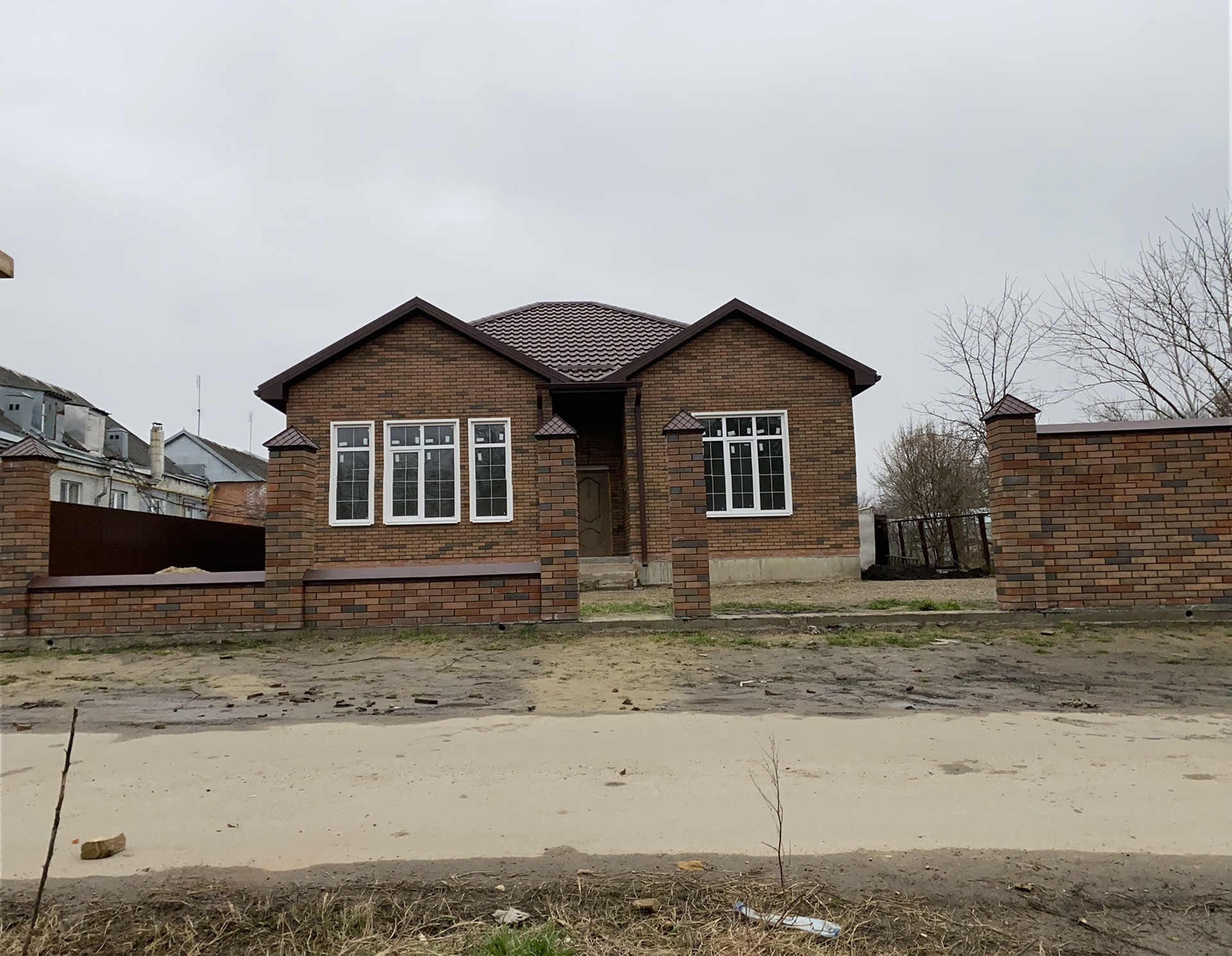 Продаётся новый дом в предчистовой отделке с планировочным  решением: кухня-столовая 22 кв.м, 3 изолированные комнаты, гардеробная. Тёплые полы - кухня-столовая, санузел, гардеробная, прихожая. Все коммуникации: газ, свет, вода, центральная канализация подключены. Входная дверь имеется, фирма Antares, модель Англия.