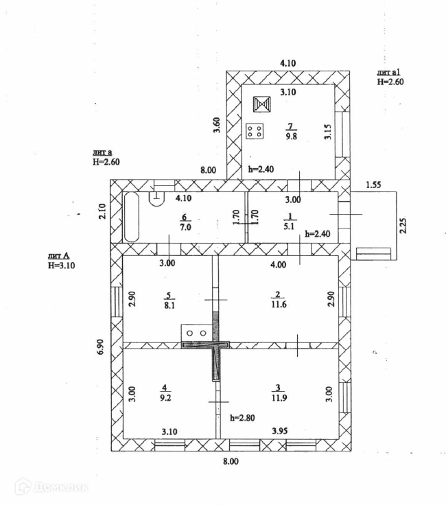 Высота потолков (м.): 2.80