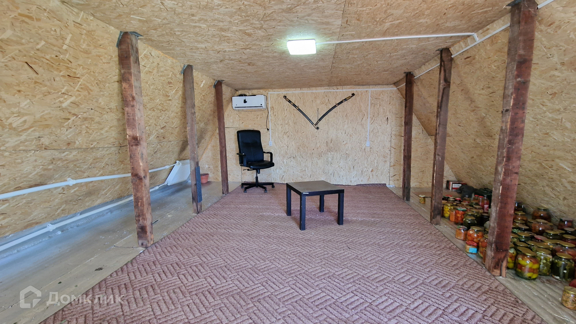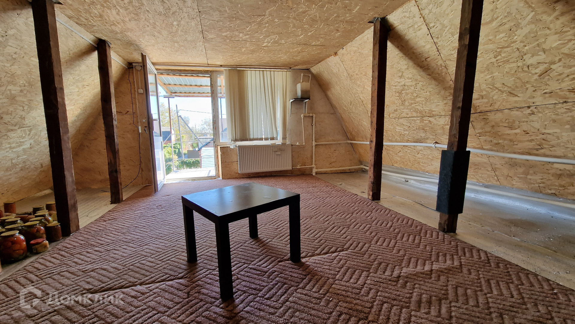 В доме 1 комната внизу+ мансарда.