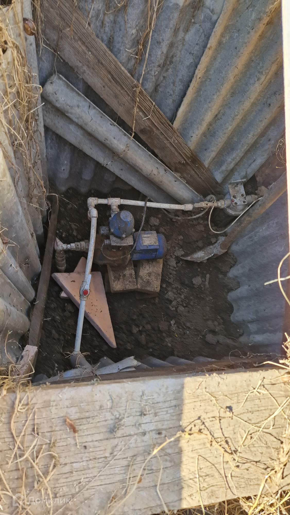 Вода подается из скважины насосом.