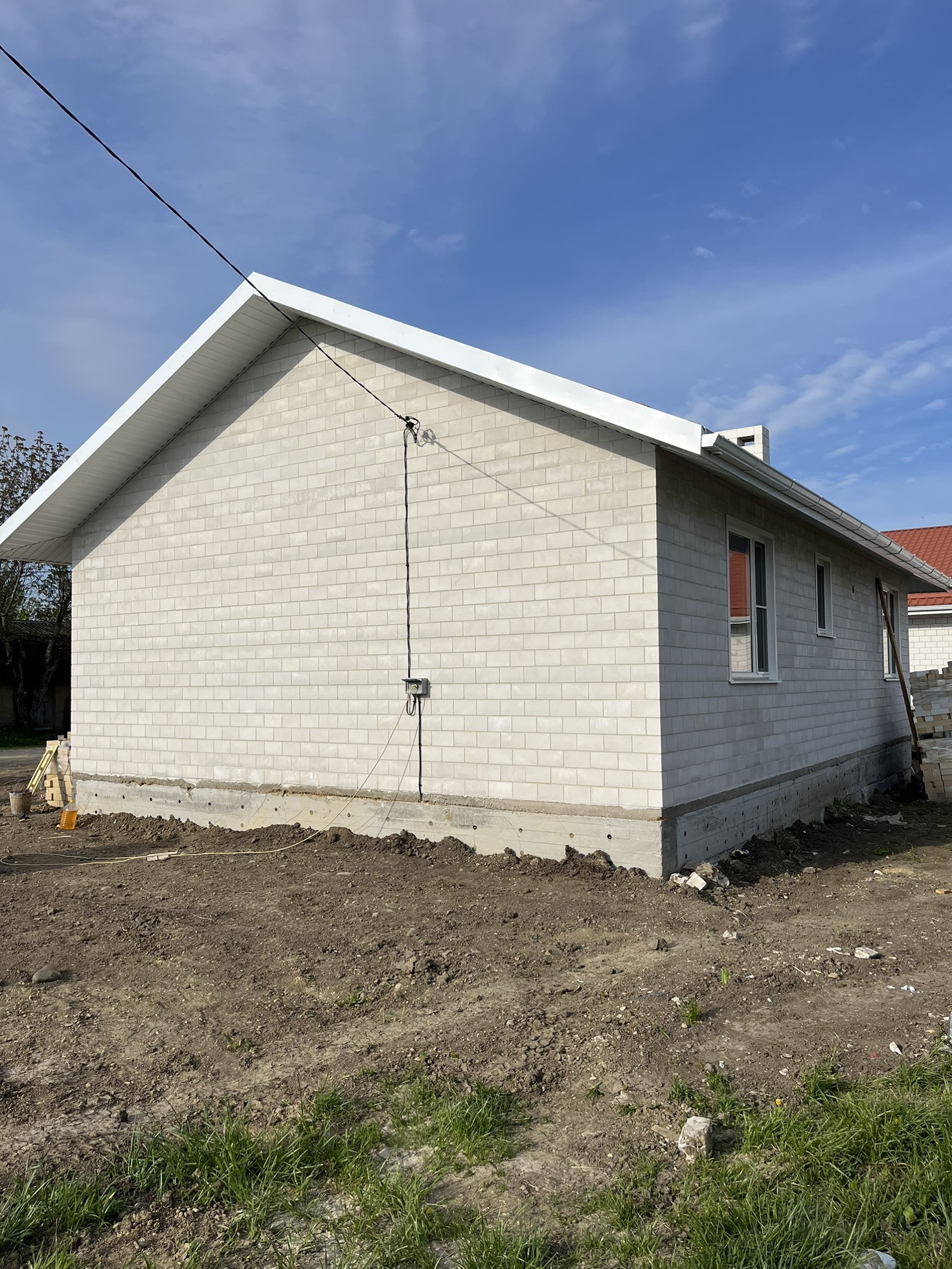 Осуществлен развод электричества по зданию (220 В), монтаж (ввод от скважины) холодного водоснабжения (1,2−1,5 Бар.), сетевого газоснабжения, локального водоотведения, металлопластиковое отопление с металлическими радиаторами (RISPA Турция) и навесным котлом.